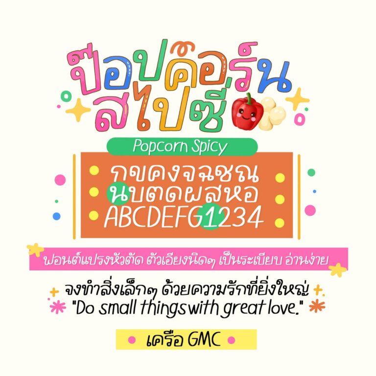ฟอนต์ป๊อบคอร์นสไปซี่ – ฟอนต์แปรงหัวตัด ตัวเอียงนิดๆ เป็นระเบียบ อ่านง่าย