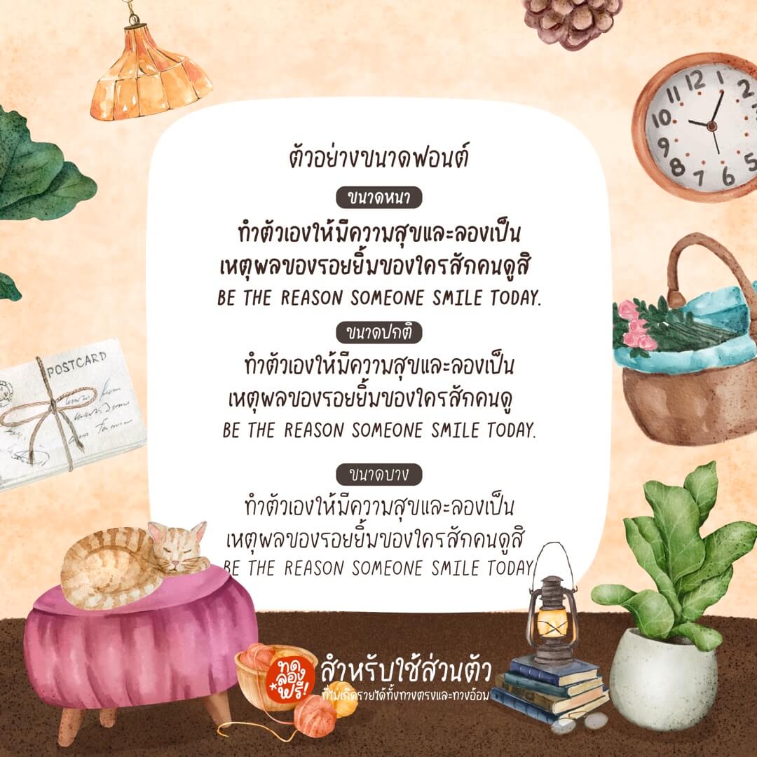 - สำหรับใช้งานส่วนตัวที่ไม่แสวงหาผลกำไรหรือผลประโยชน์จากการใช้ฟอนต์