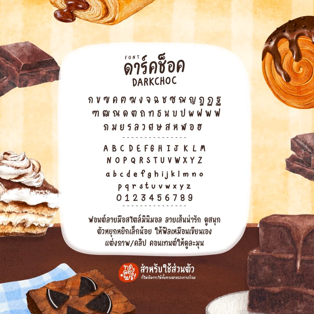 แจกฟรีแบบส่วนตัว เป็นตัว DEMO ไม่มีภาษาอังกฤษพิมพ์ใหญ่, ตัวเลข และวรรณยุกต์บางตัว