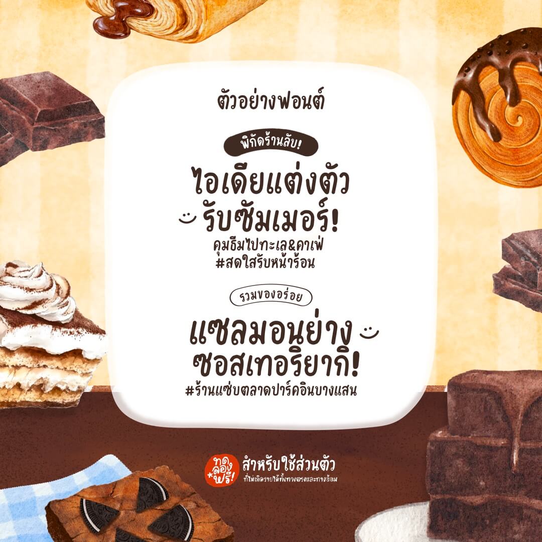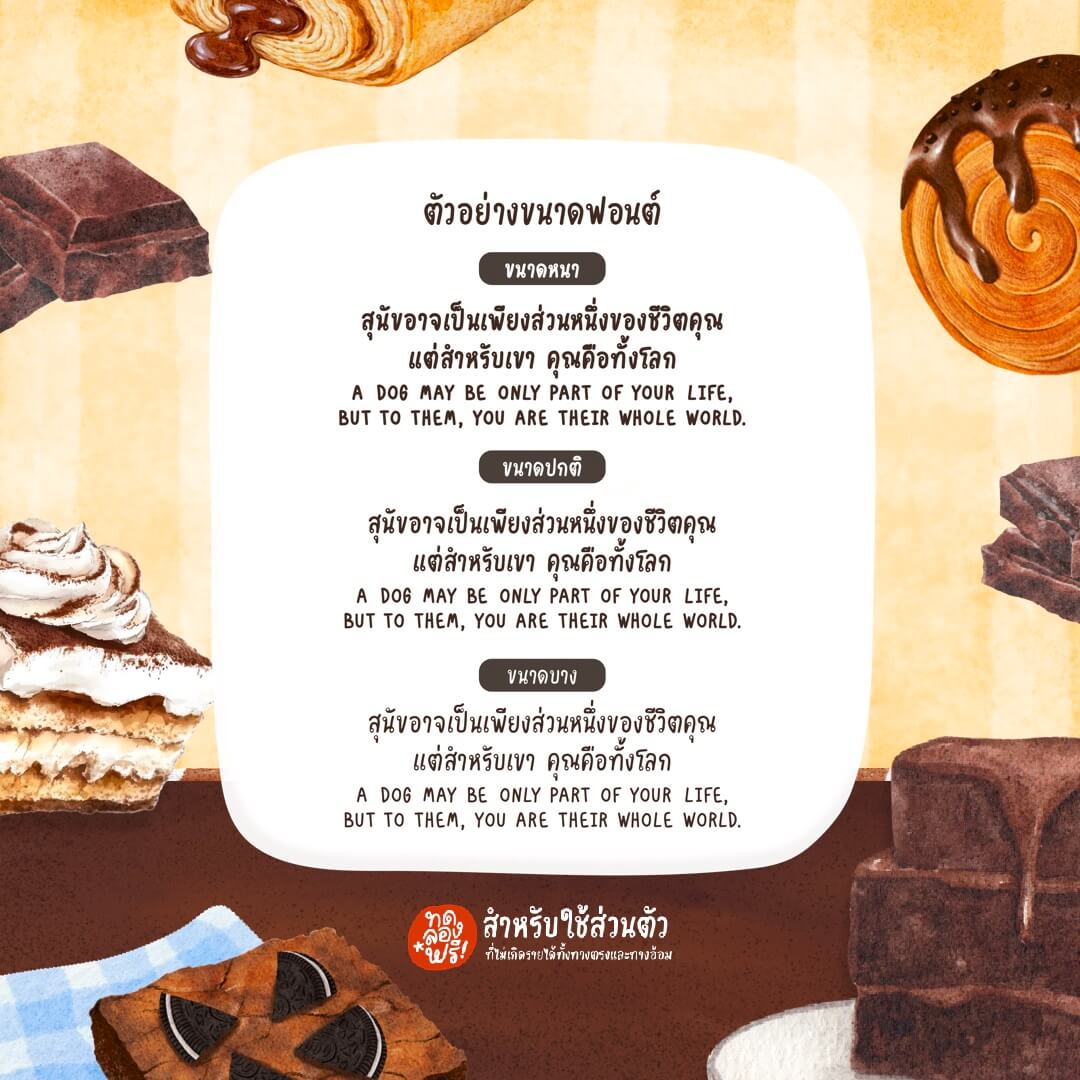 - สำหรับใช้งานส่วนตัวที่ไม่แสวงหาผลกำไรหรือผลประโยชน์จากการใช้ฟอนต์