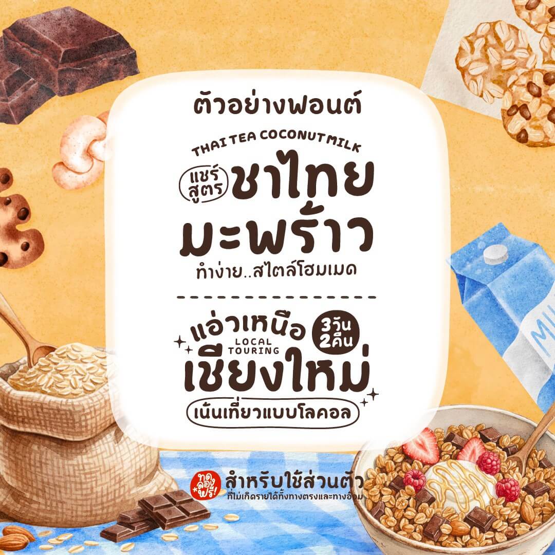 - สำหรับใช้งานส่วนตัวที่ไม่แสวงหาผลกำไรหรือผลประโยชน์จากการใช้ฟอนต์