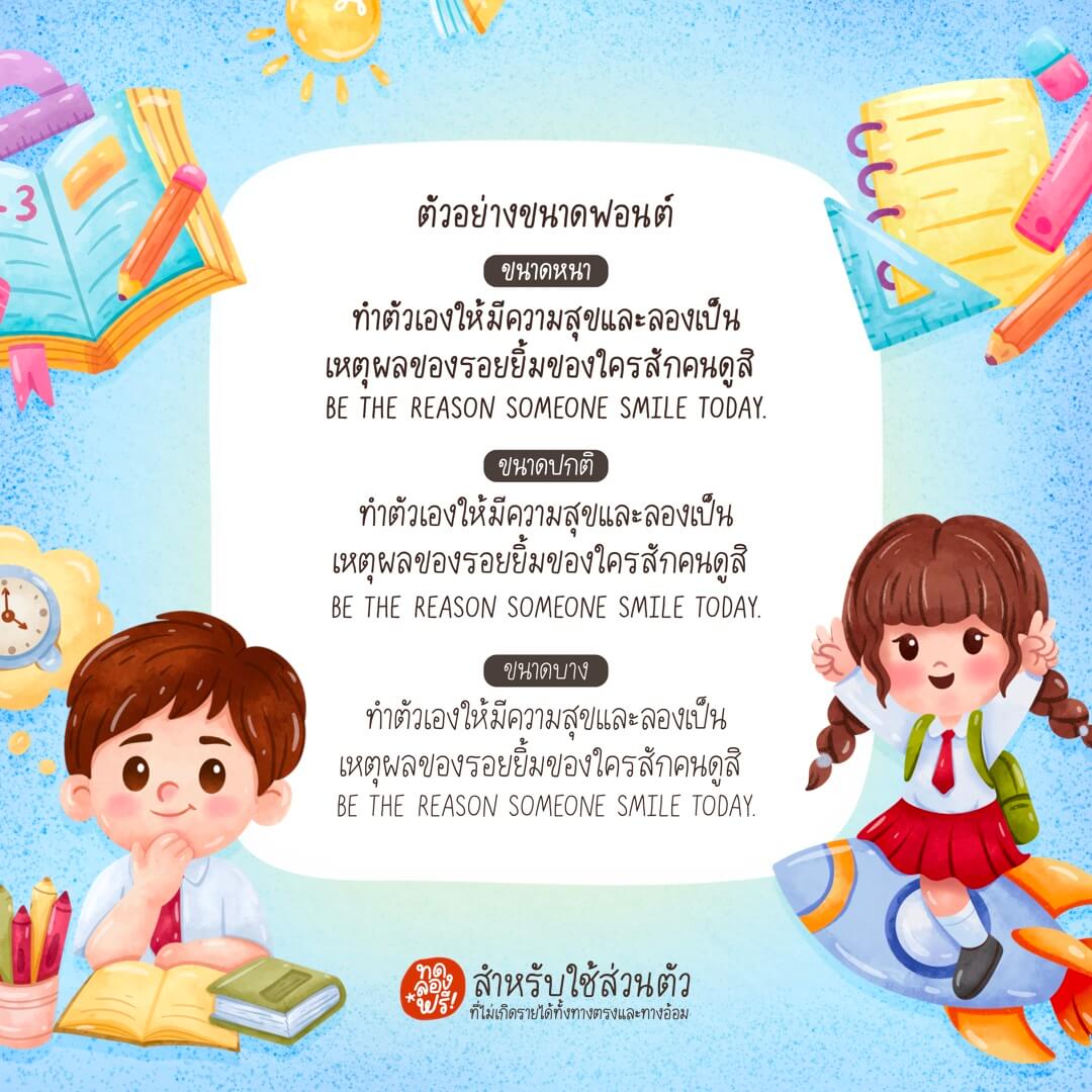 - สำหรับใช้งานส่วนตัวที่ไม่แสวงหาผลกำไรหรือผลประโยชน์จากการใช้ฟอนต์
