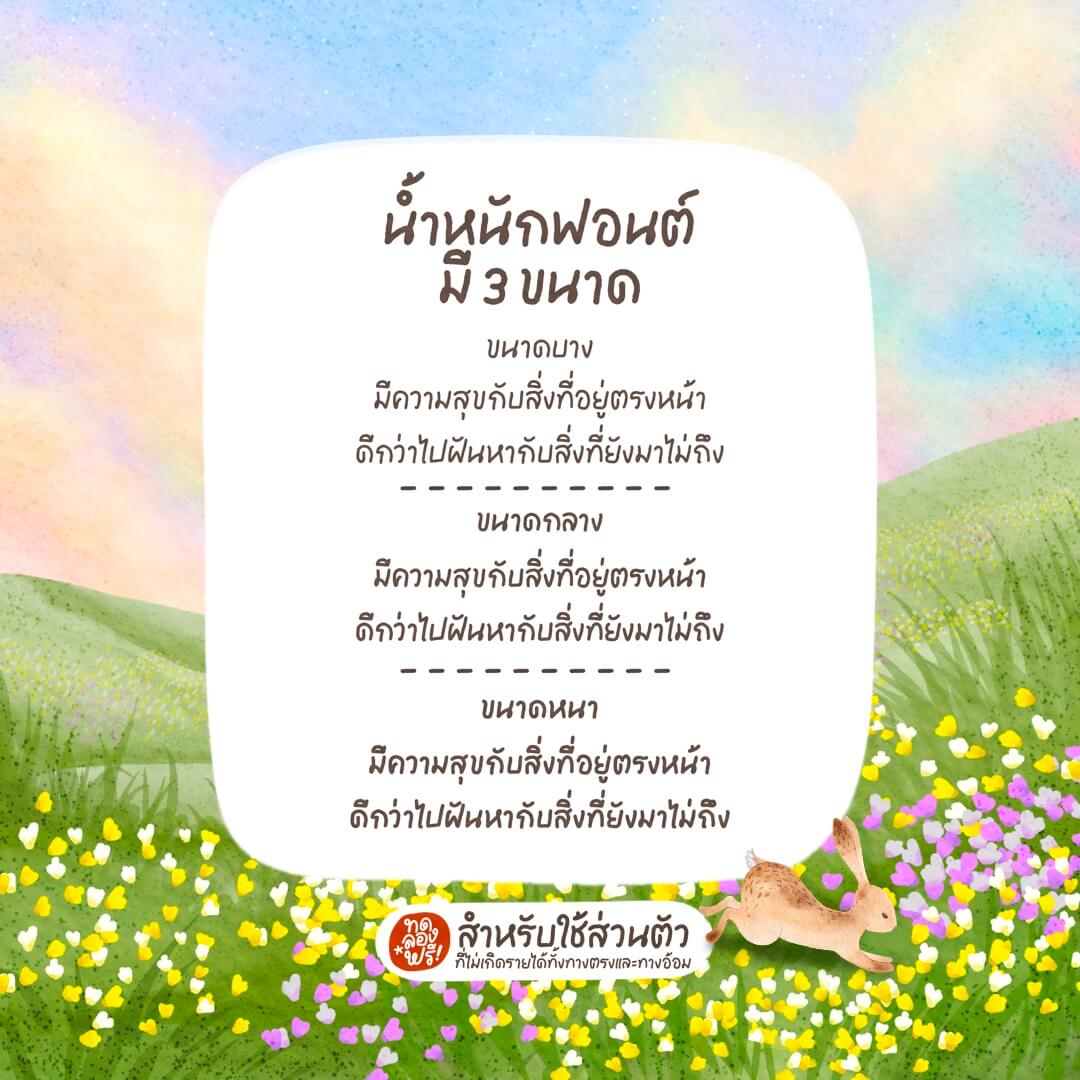 - สำหรับใช้งานส่วนตัวที่ไม่แสวงหาผลกำไรหรือผลประโยชน์จากการใช้ฟอนต์