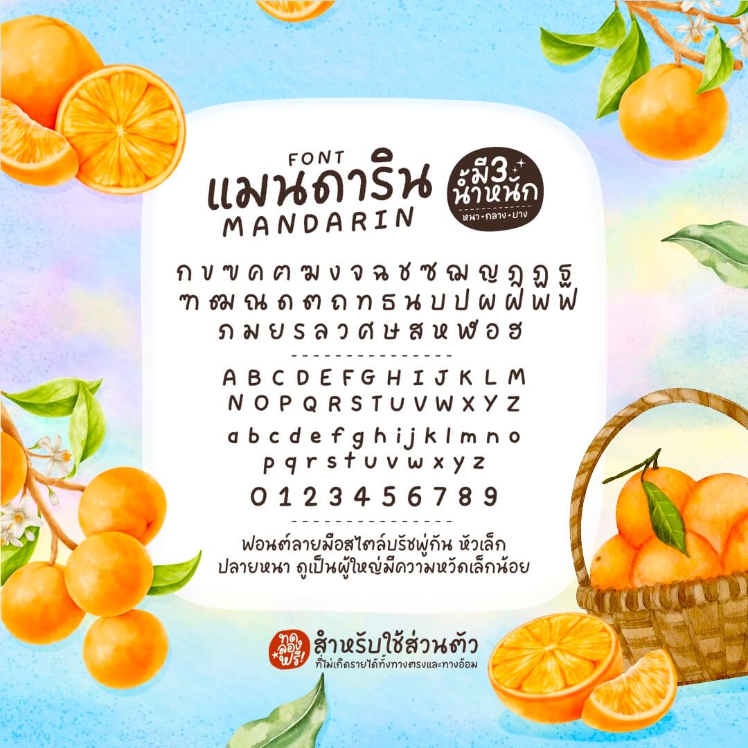 - สำหรับใช้งานส่วนตัวที่ไม่แสวงหาผลกำไรหรือผลประโยชน์จากการใช้ฟอนต์