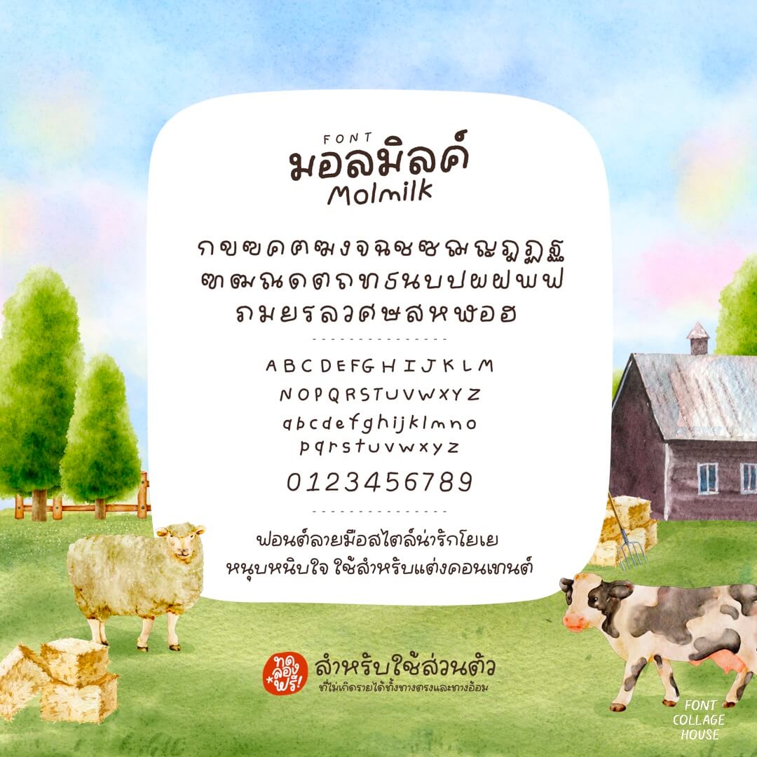- สำหรับใช้งานส่วนตัวที่ไม่แสวงหาผลกำไรหรือผลประโยชน์จากการใช้ฟอนต์
