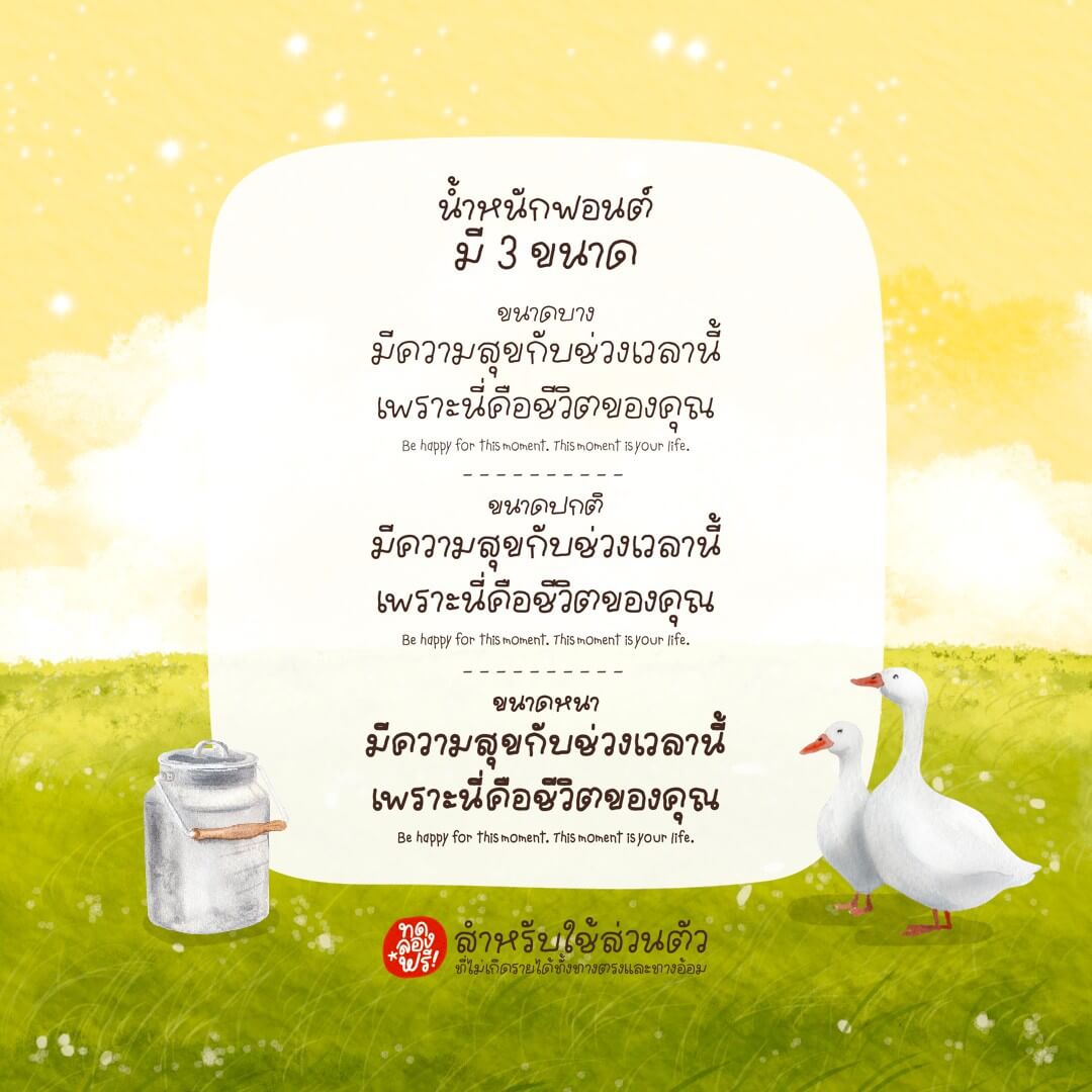 - สำหรับใช้งานส่วนตัวที่ไม่แสวงหาผลกำไรหรือผลประโยชน์จากการใช้ฟอนต์