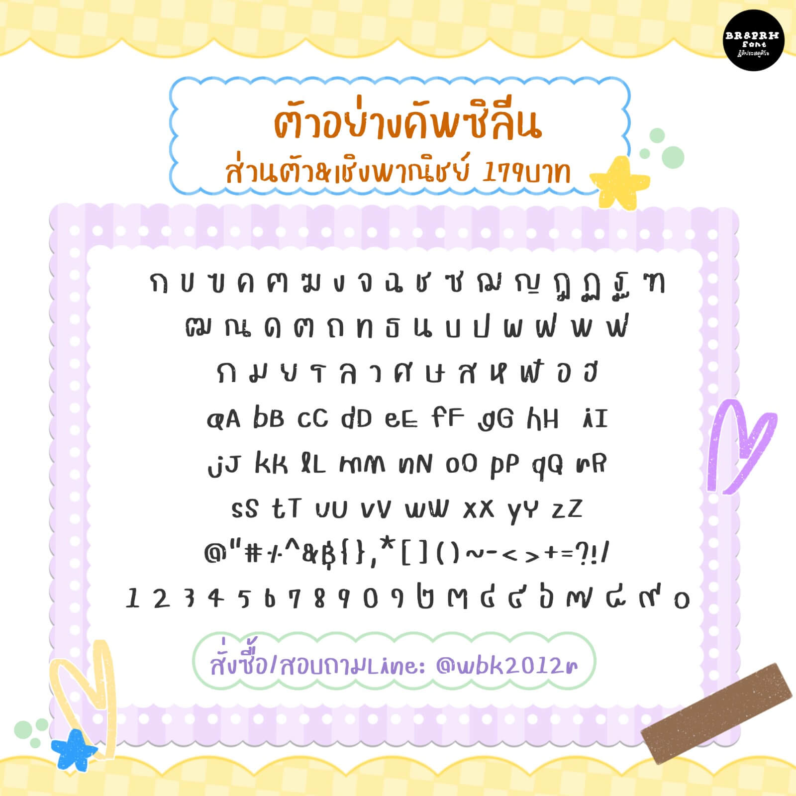 เช่น งานที่มีผลประโยชน์ทางการค้า / การโปรโมต / งานเกี่ยวกับบริษัท องค์กร หจก. หรือร้านค้า / ทำคลิปลงบน Tiktok, Youtube, รีวิว เพจ โลโก้ ป้าย - ฟอนต์มีขนาดไม่เท่ากัน / ไม่มีเลข-วรรณยุกต์ / อักษรโปร่งบางตัว