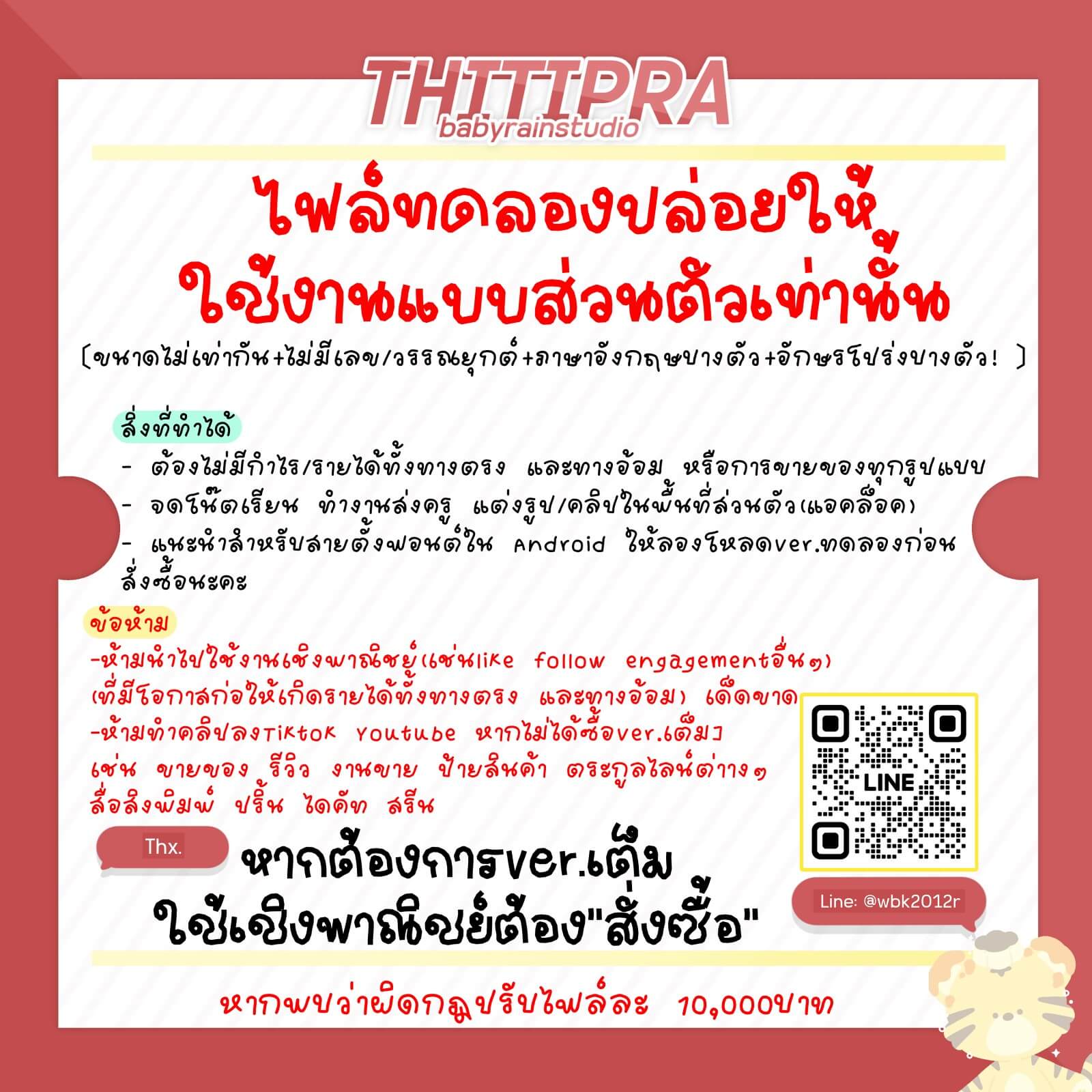 ❌ ห้ามแจก ขาย ส่งต่อ ลงกลุ่ม ดัดแปลงไฟล์ฟอนต์