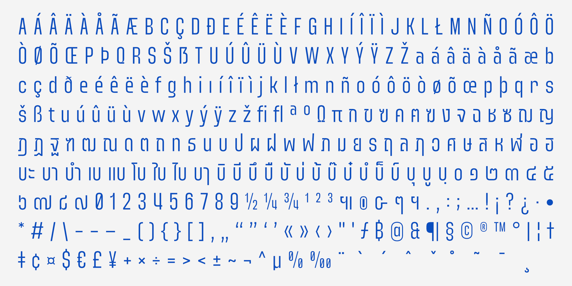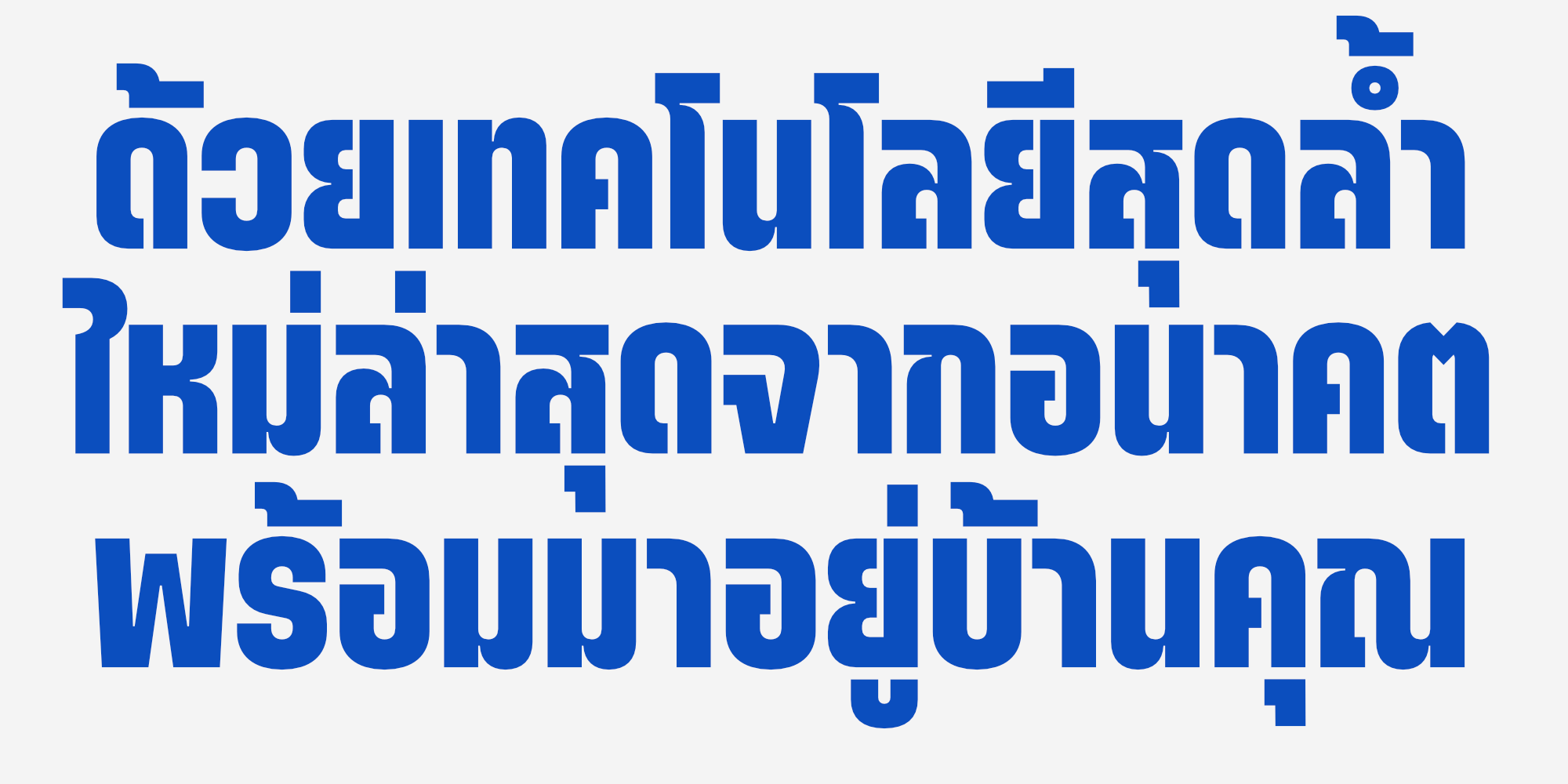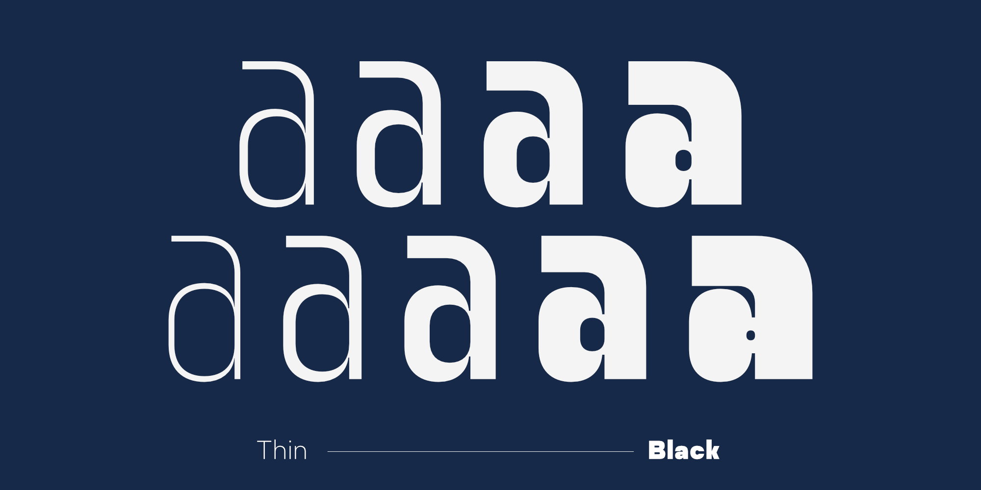 รูปแบบอักษรไทยเป็นดีไซน์แบบ “ไม่มีหัว” ที่ดูสะอาดตา ทันสมัย และมีความเป็นสากล จุดเด่นสำคัญอยู่ที่ความหลากหลายของน้ำหนัก ซึ่งให้อารมณ์ที่แตกต่างกันอย่างชัดเจน โดยน้ำหนักหนา จะมีลักษณะที่ตัน ทึบ และแข็งแรงทรงพลัง คล้ายกับโครงสร้างทางสถาปัตยกรรม ในขณะที่น้ำหนักบาง จะให้เส้นสายที่คมชัด โปร่งเบา และดูเรียบหรู