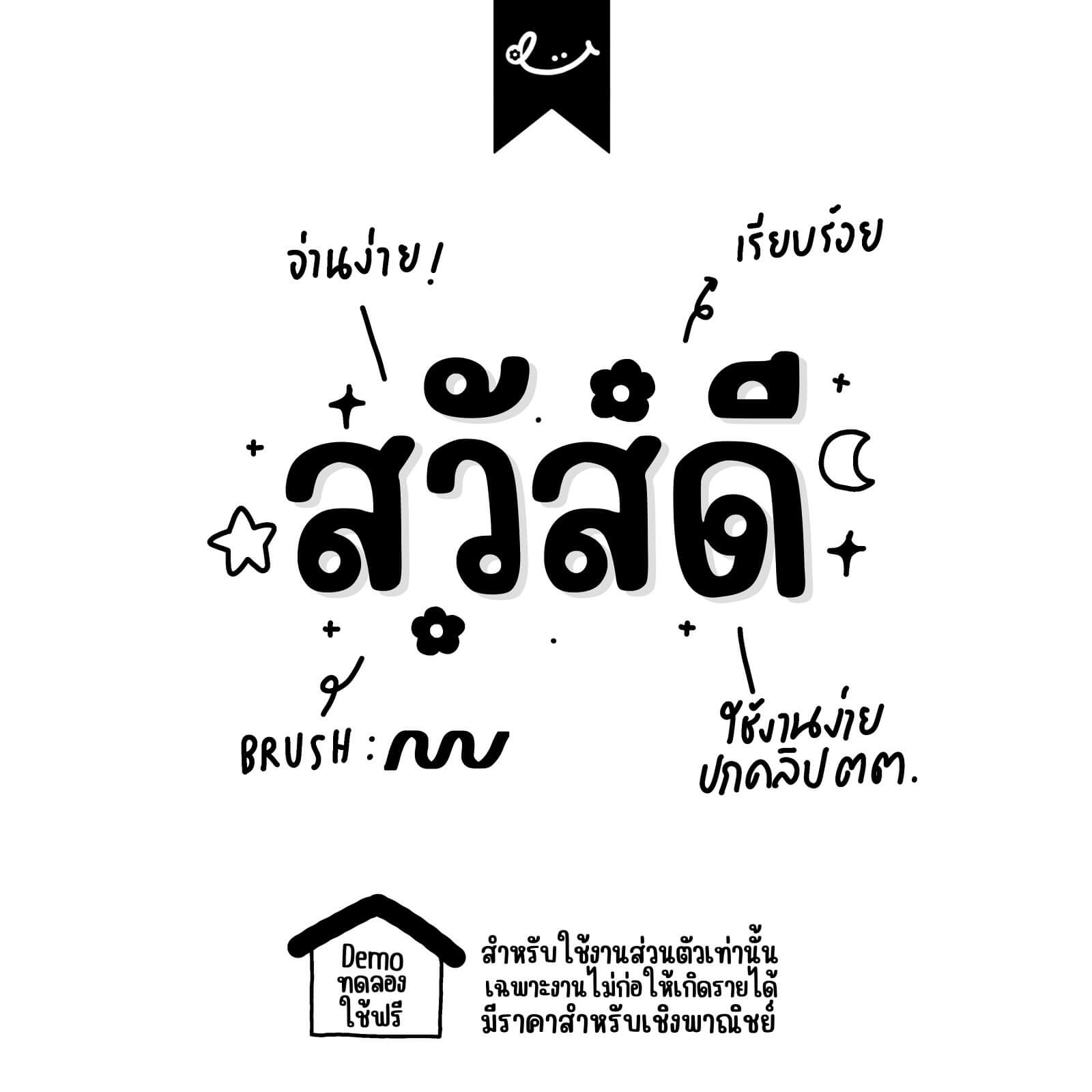 - ฟอนต์อนุญาตให้ใช้เพื่อการบันทึกสรุป งานส่งอาจารย์ หรือการตกแต่งรูปภาพเพื่อการใช้งานส่วนบุคคลเท่านั้น