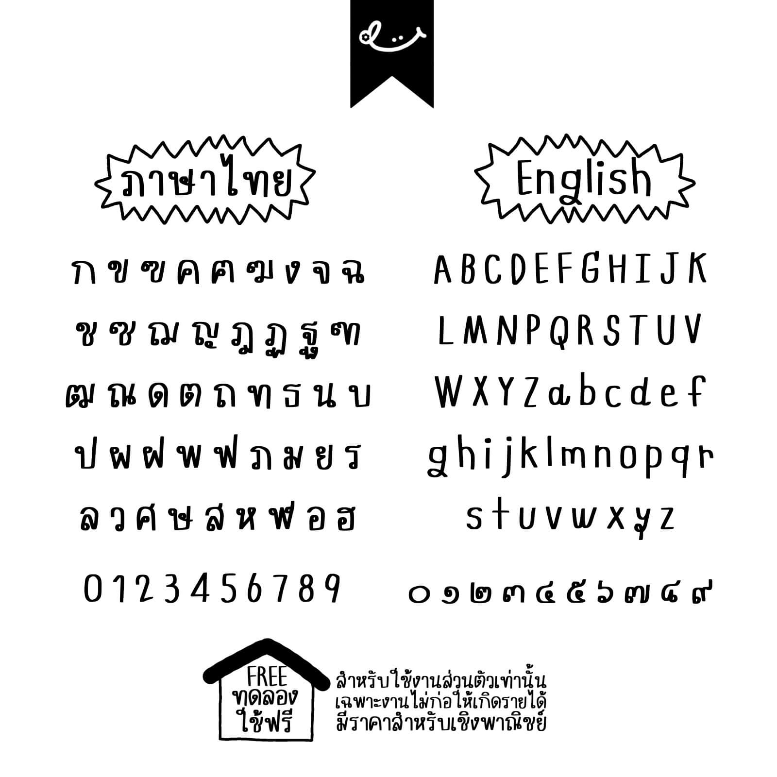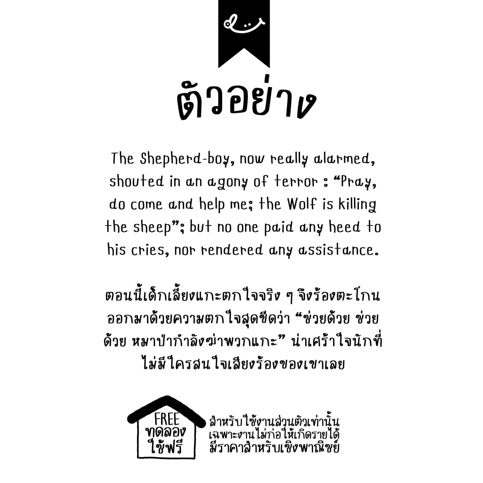 - ฟอนต์อนุญาตให้ใช้เพื่อการบันทึกสรุป งานส่งอาจารย์ หรือการตกแต่งรูปภาพเพื่อการใช้งานส่วนบุคคลเท่านั้น