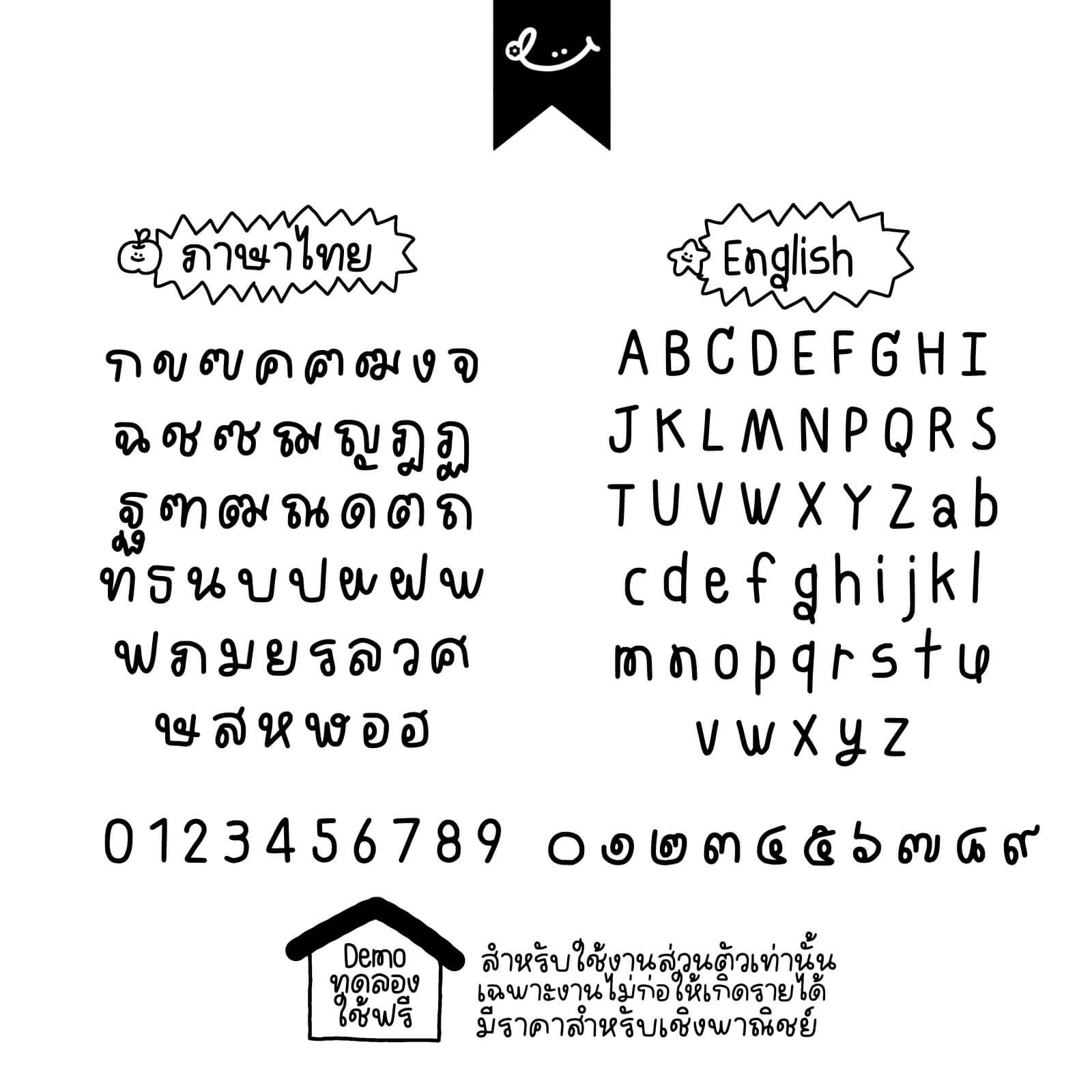 - ฟอนต์อนุญาตให้ใช้เพื่อการบันทึกสรุป งานส่งอาจารย์ หรือการตกแต่งรูปภาพเพื่อการใช้งานส่วนบุคคลเท่านั้น