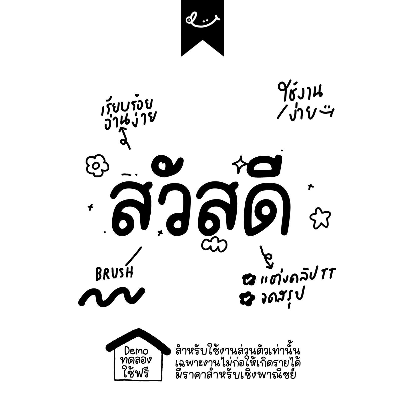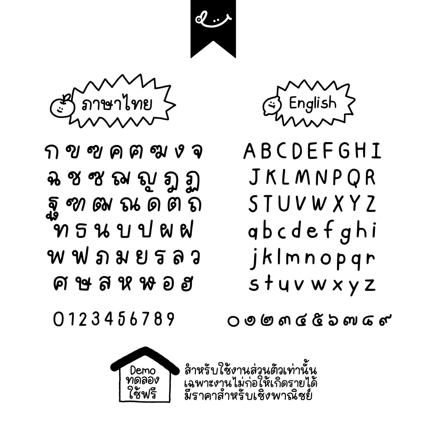 - ฟอนต์อนุญาตให้ใช้เพื่อการบันทึกสรุป งานส่งอาจารย์ หรือการตกแต่งรูปภาพเพื่อการใช้งานส่วนบุคคลเท่านั้น