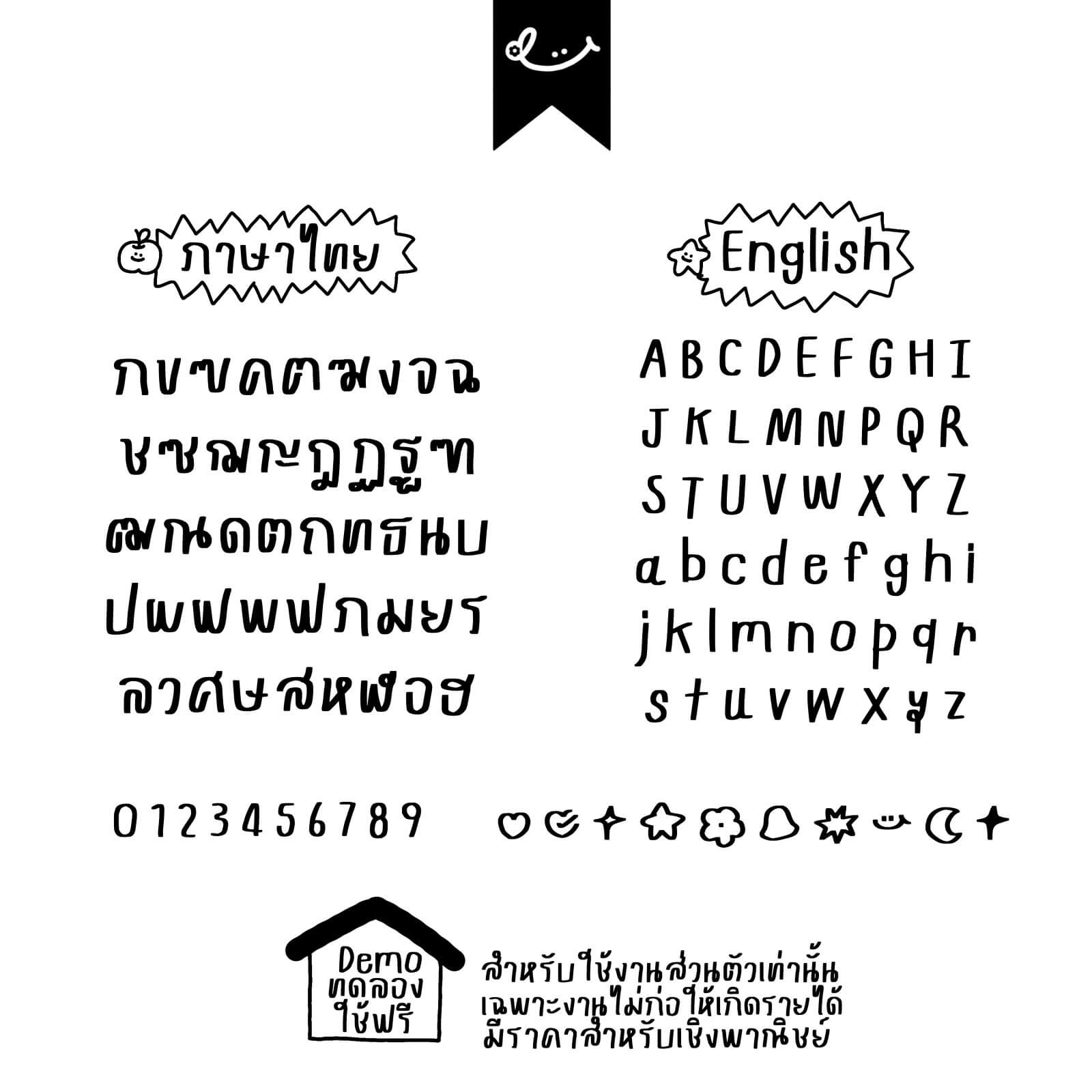 - ฟอนต์อนุญาตให้ใช้เพื่อการบันทึกสรุป งานส่งอาจารย์ หรือการตกแต่งรูปภาพเพื่อการใช้งานส่วนบุคคลเท่านั้น