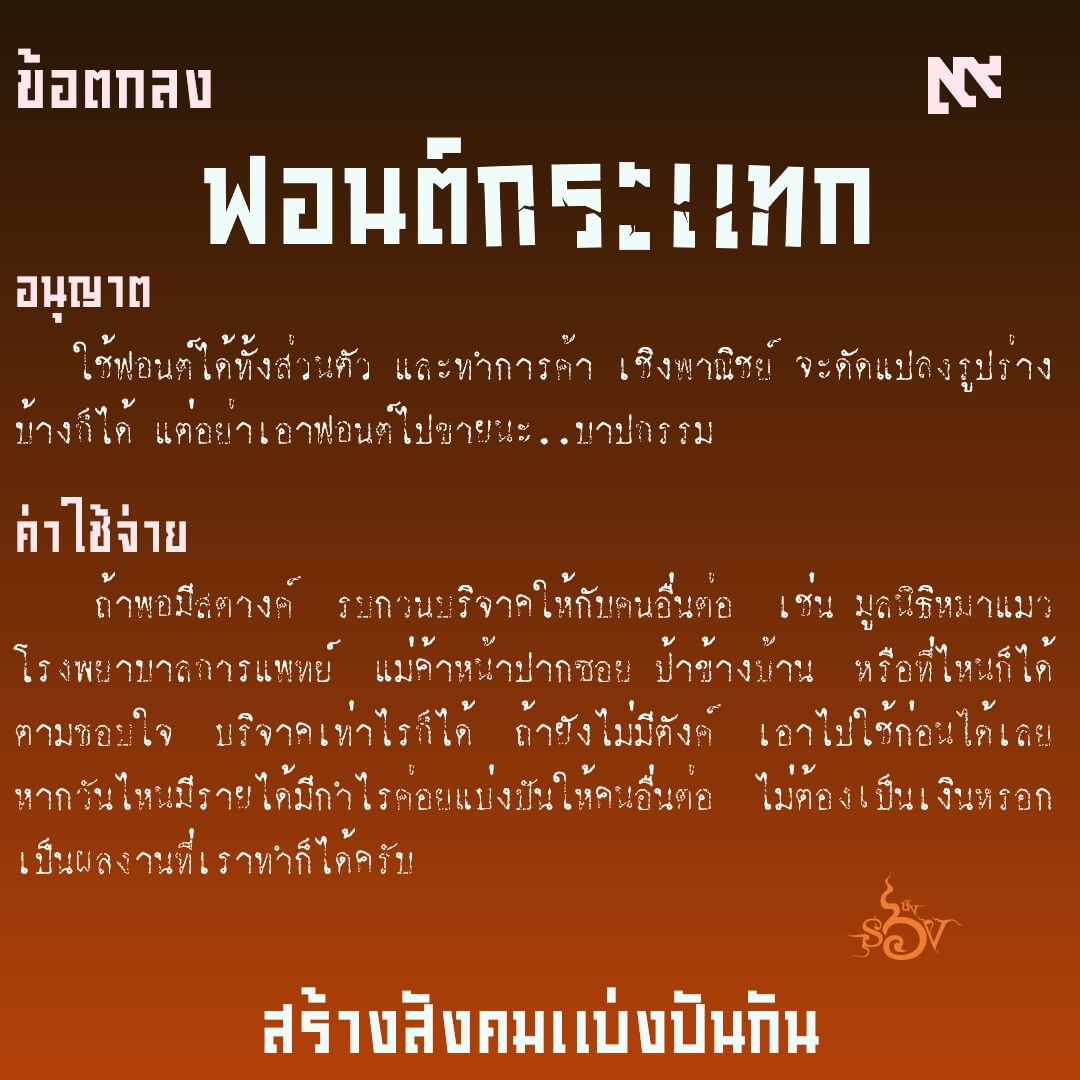 ฟอนต์กระแทก – ใช้ ฯฯ หน้าอักษรที่อยากให้ถูกกระแทก แตกได้ 1-5 ตัวอักษร