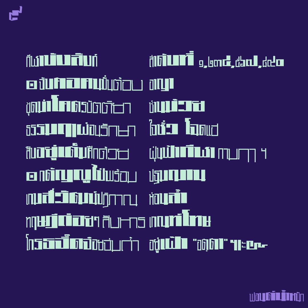 ฟอนต์น้ำหนัก – ทำอักษรวูบวาบ จากการไล่น้ำหนัก และ/หรือ ไล่ความกว้าง เหมาะใช้แค่เป็นพิ้นหลังข้อความเยอะๆ และไม่ต้องการอ่านข้อความเหล่านั้น 55 …กด bold ได้อีกแบบ