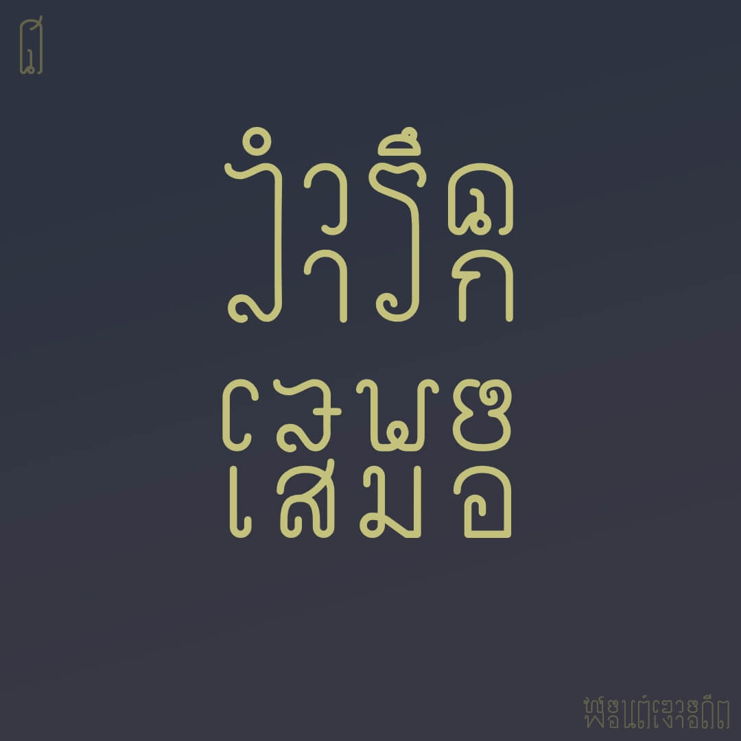 ฟอนต์เงาอดีต – งานทดลองฟอนต์ 2 ชั้น อักษรไทยตัวบนต้นแบบจาก จารึกหลักที่ ๑ ส่วนตัวล่างอักษรปัจจุบันแบบหัวเปิด เพื่อให้เห็นการเปลี่ยนรูปอักษรจากในอดีตมาปัจจุบัน ส่วนอักษรที่มีความคล้ายกันหรือไม่ทำให้สับสน จะทำการยึดอักษรเพื่อเป็นการแสดงให้เห็นความคงอยู่ หรือเปลี่ยนแปลงที่ค่อนข้างน้อย