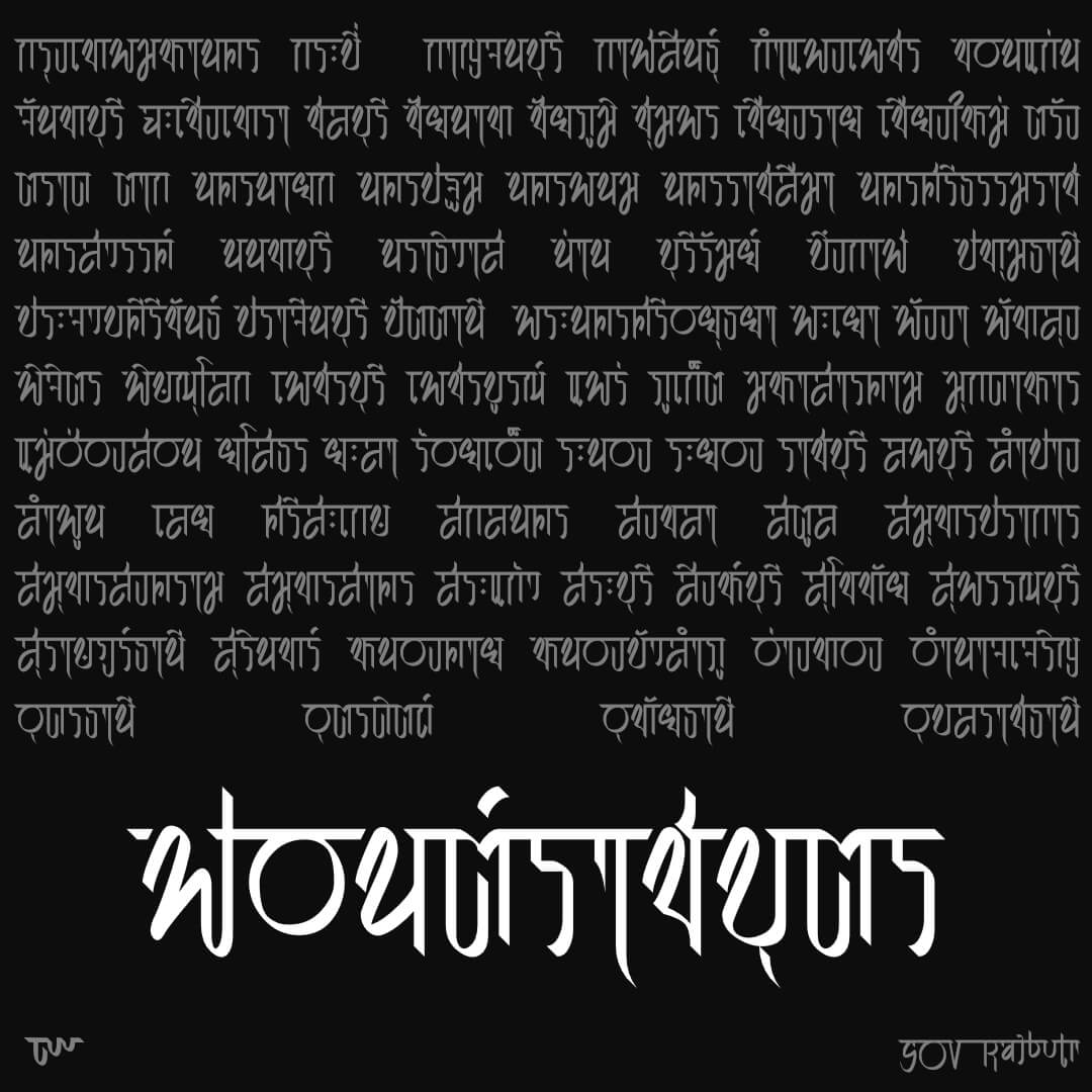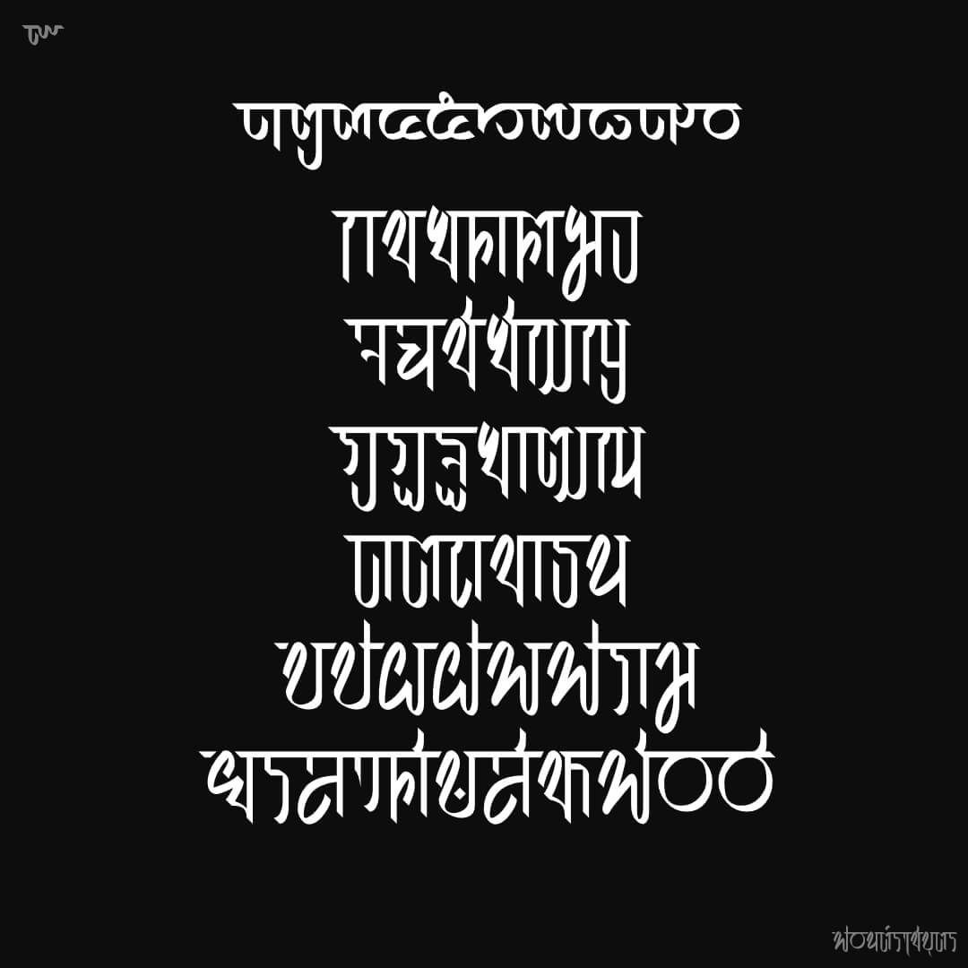 ฟอนต์ราชบุตร – ตั้งโจทย์ไว้ว่า… ฟอนต์ที่มีเส้นเชื่อมโยงกัน และใช้ปากกาหัวตัด แนวทางจึงมาจากอักษรเทวนาครี อินเดีย แถมด้วยโจทย์มุมปากกา 135 องศา… ออกแบบอักษรใหม่หมด