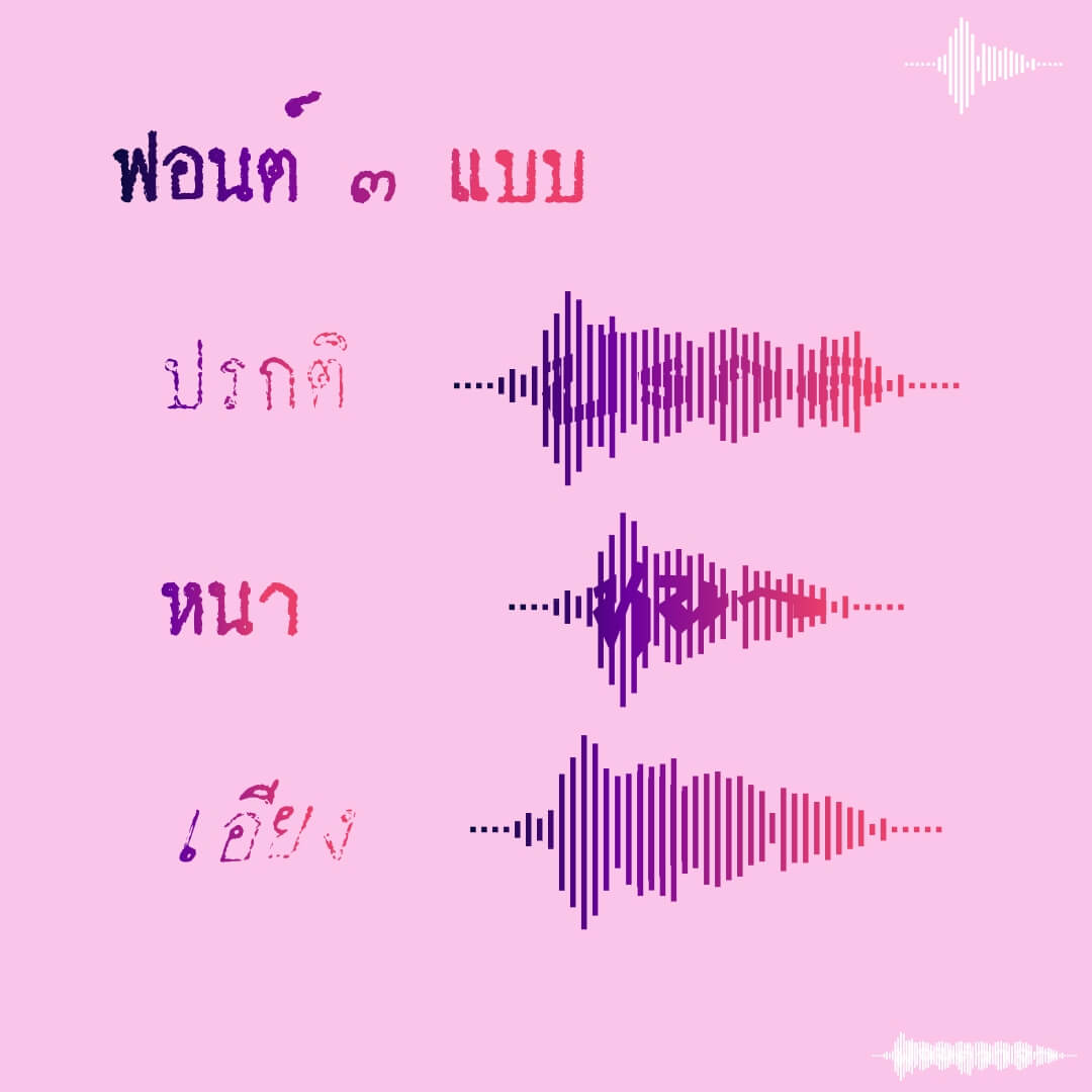 ฟอนต์วาจา – อักษรบนรูปคลื่นเสียง อักษรไทยพิมพ์ได้ปรกติ เว้นวรรคแยกคำหรือประโยค อักษรละตินใส่ไว้ในปีกกา { }