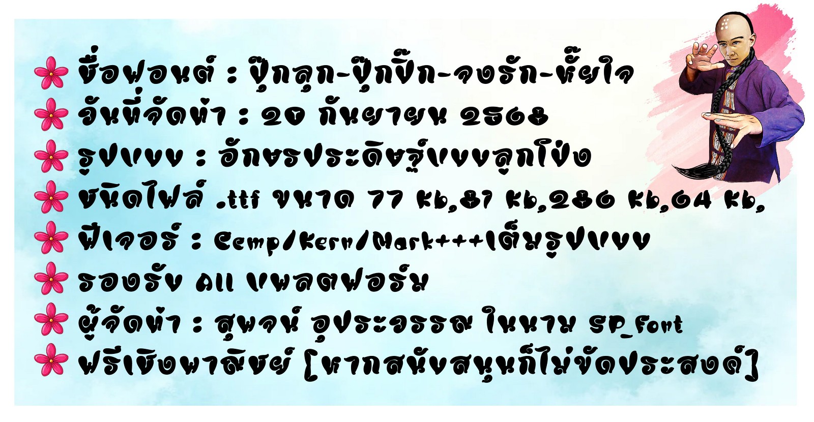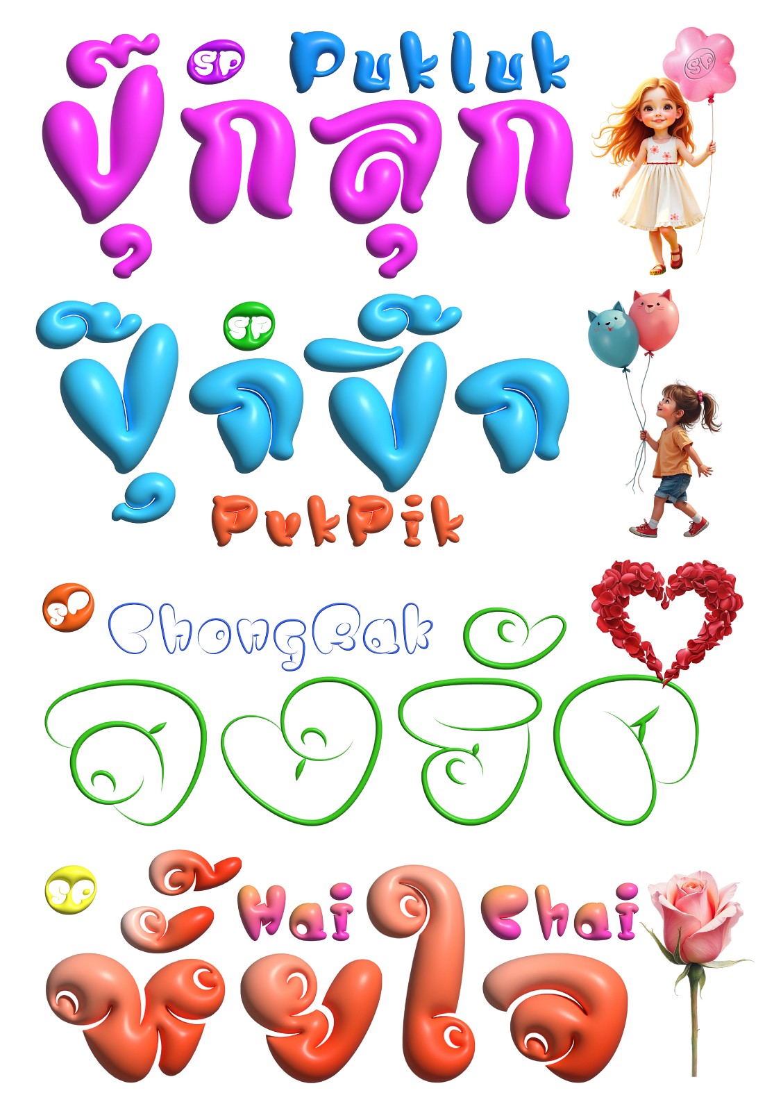 4 ฟอนต์สไตล์ลูกโป่ง ฟอนต์พิเศษเทศกาล ได้แก่ ปุ๊กลุก-ปุ๊กปิ๊ก-จงรัก-หั้ยใจ (SP_PukPik, SP_PukLuk, SP_HaiChai, SP_ChongRak)