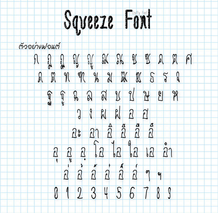 ฟอนต์ Squeeze ฟอนต์ที่ถูกออกแบบให้โดนบีบบบบบบบบบบบ ฟอนต์มีทั้งภาษาไทยและภาษาอังกฤษ แฟมิลี่เซ็ตนี้มี 6 ขนาดด้วยกัน ทั้งตัวหนา ตัวปกติ ตัวบาง และตัวเอนสำหรับทุกน้ำหนัก สัญลักษณ์บวกลบคูณหารมีให้ใช้ครบ ฝากไว้ในอ้อมอกอ้อมใจพี่จ๋าด้วยนะจ๊ะ