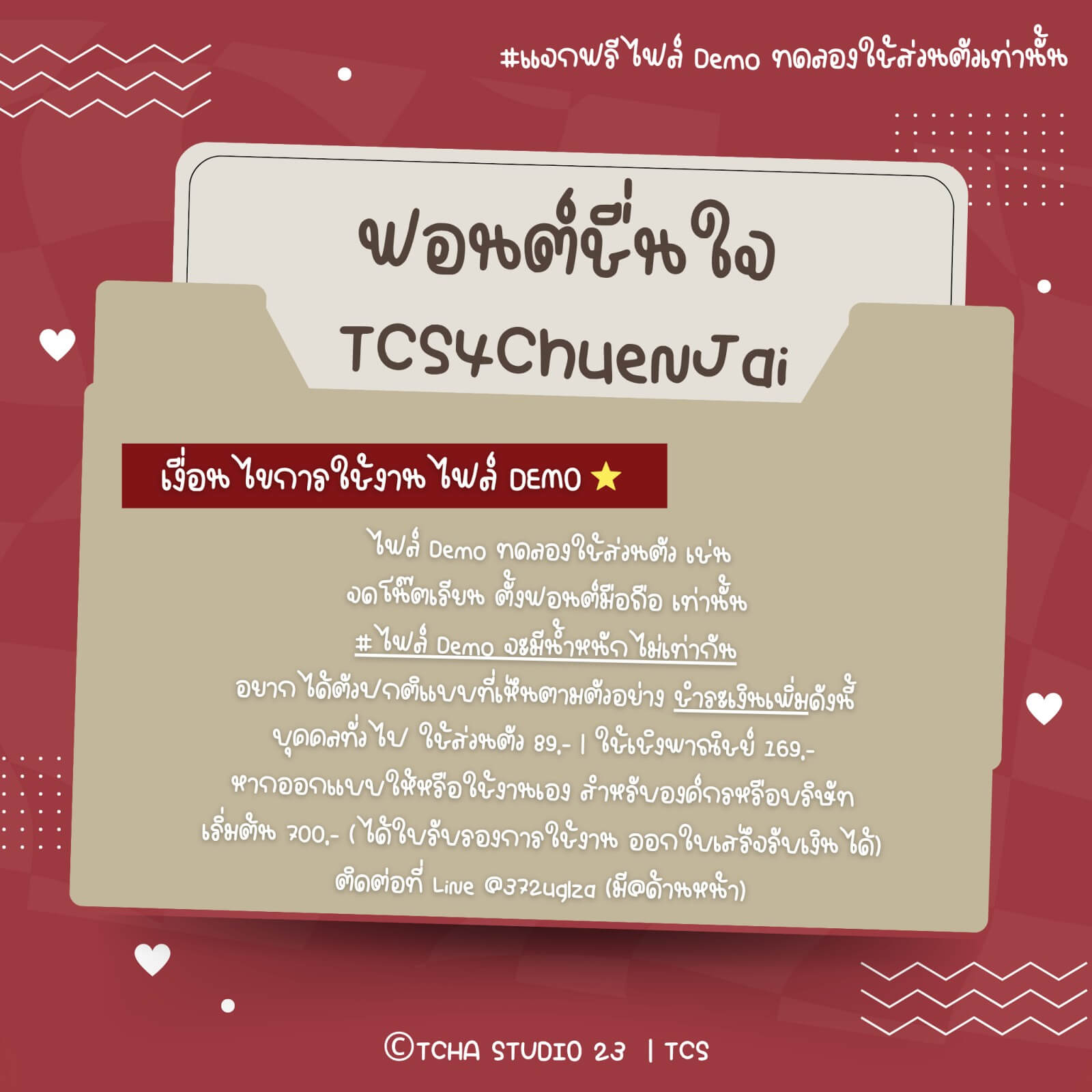 ฟอนต์ชื่นใจ (TCS4ChuenJai) – โหลดฟรี เวอร์ชันทดลอง (Demo) สำหรับทดลองใช้ส่วนตัวเท่านั้น