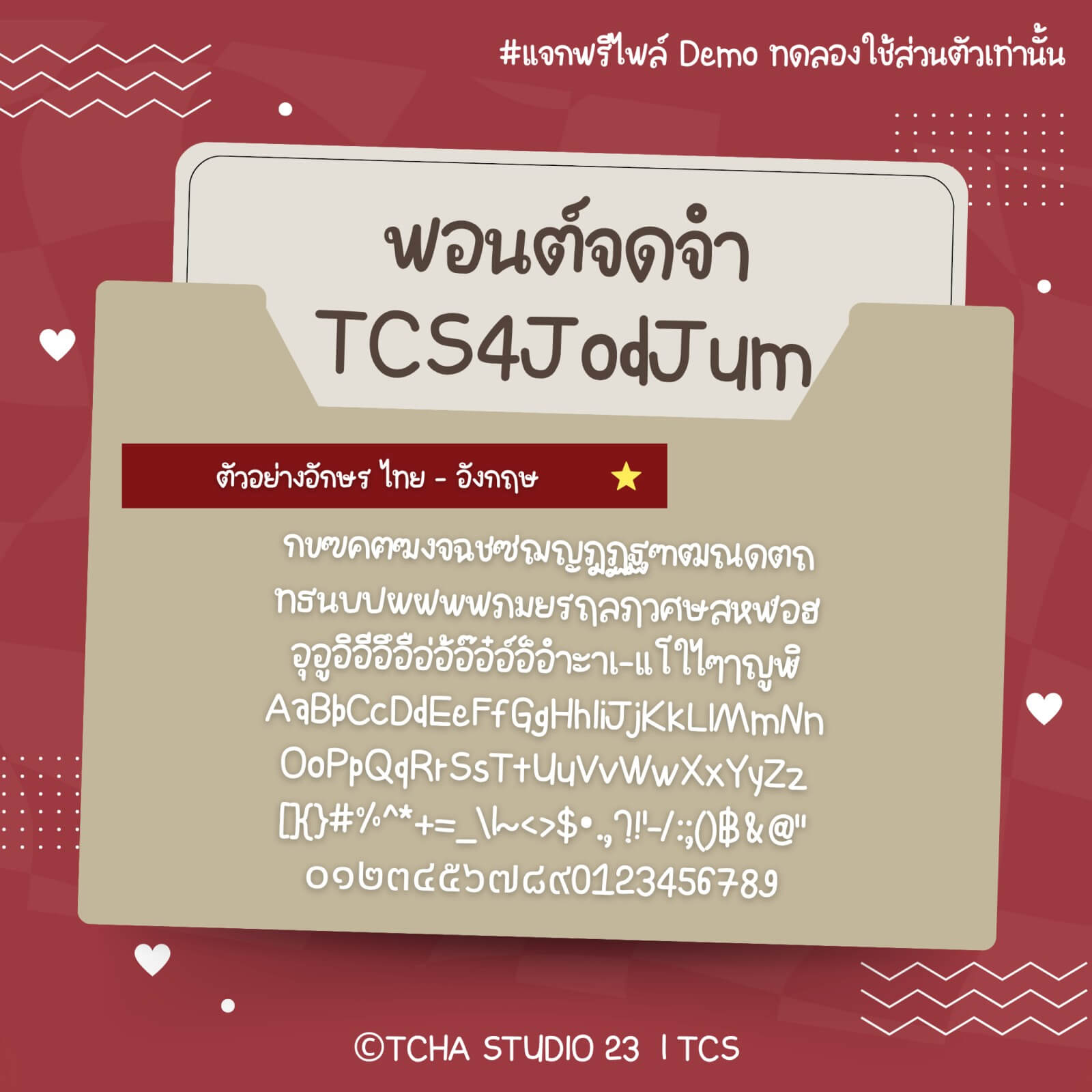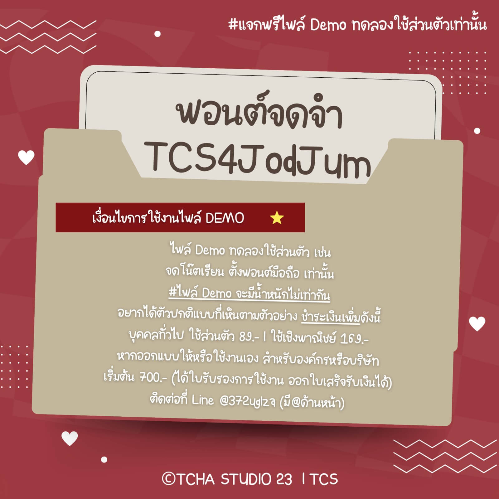 ฟอนต์จดจำ (TCS4JodJum) – โหลดฟรี เวอร์ชันทดลอง (Demo) สำหรับทดลองใช้ส่วนตัวเท่านั้น
