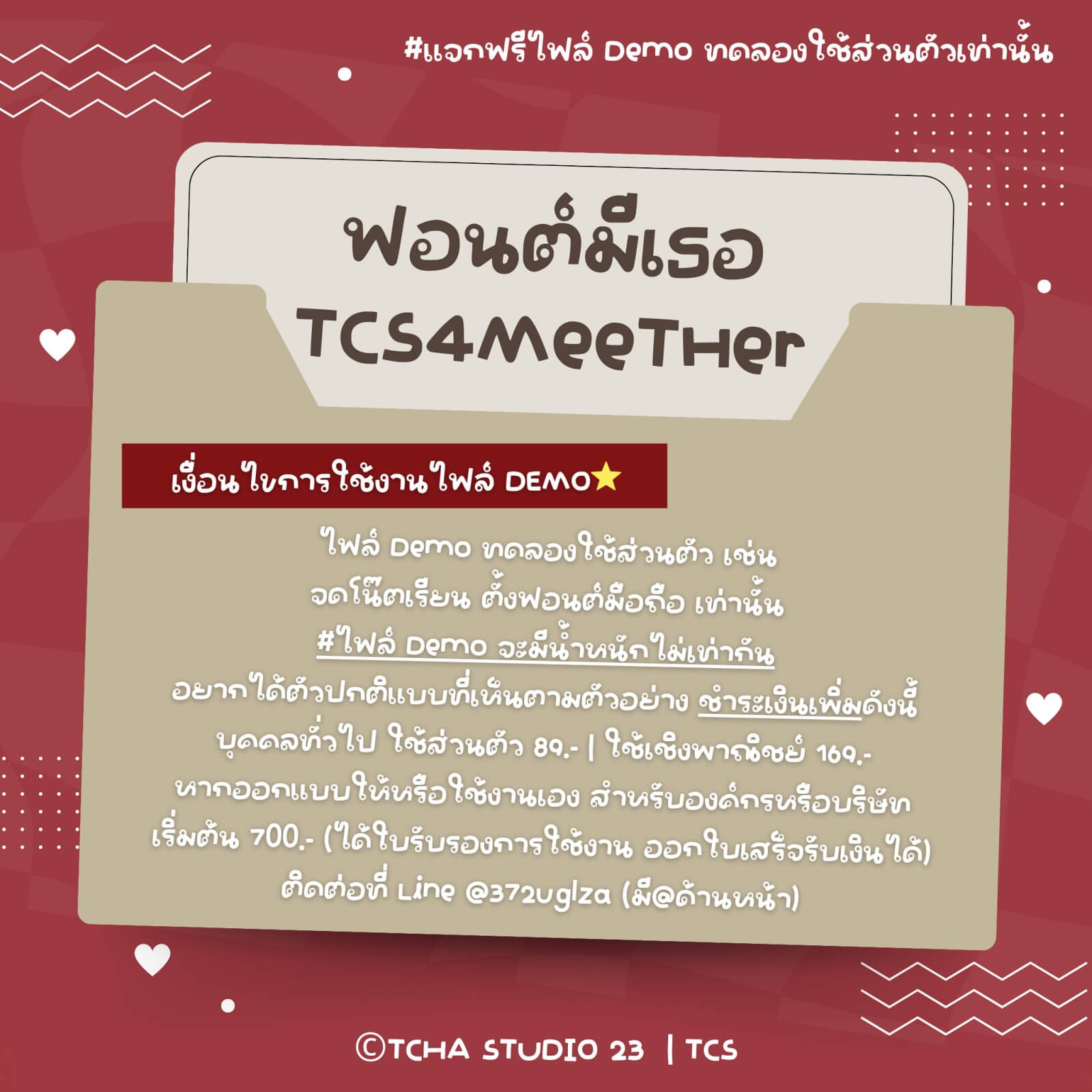- ห้ามแจก ขาย ส่งต่อ ดัดแปลง ไฟล์ฟอนต์โดยเด็ดขาด