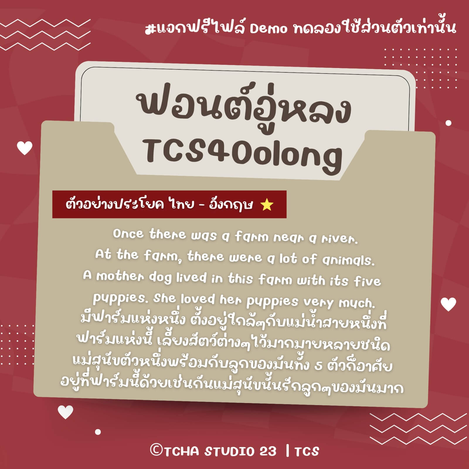 ฟอนต์อู่หลง (TCS4Oolong) – โหลดฟรี เวอร์ชันทดลอง (Demo) สำหรับทดลองใช้ส่วนตัวเท่านั้น