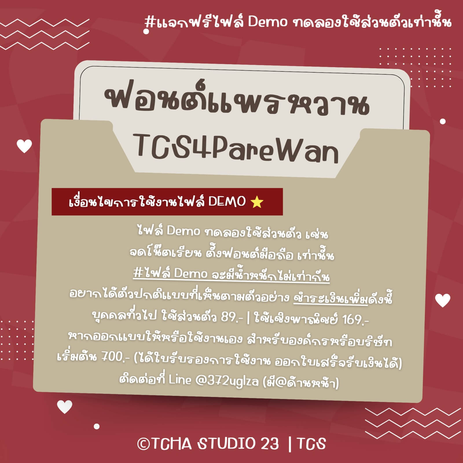 เช่น จดโน้ตเรียน ตั้งเป็นฟอนต์มือถือ ไม่มีรายได้เข้ามาเกี่ยวข้องทั้งทางตรงหรือทางอ้อม - ห้ามแจก ขาย ส่งต่อ ดัดแปลง ไฟล์ฟอนต์โดยเด็ดขาด