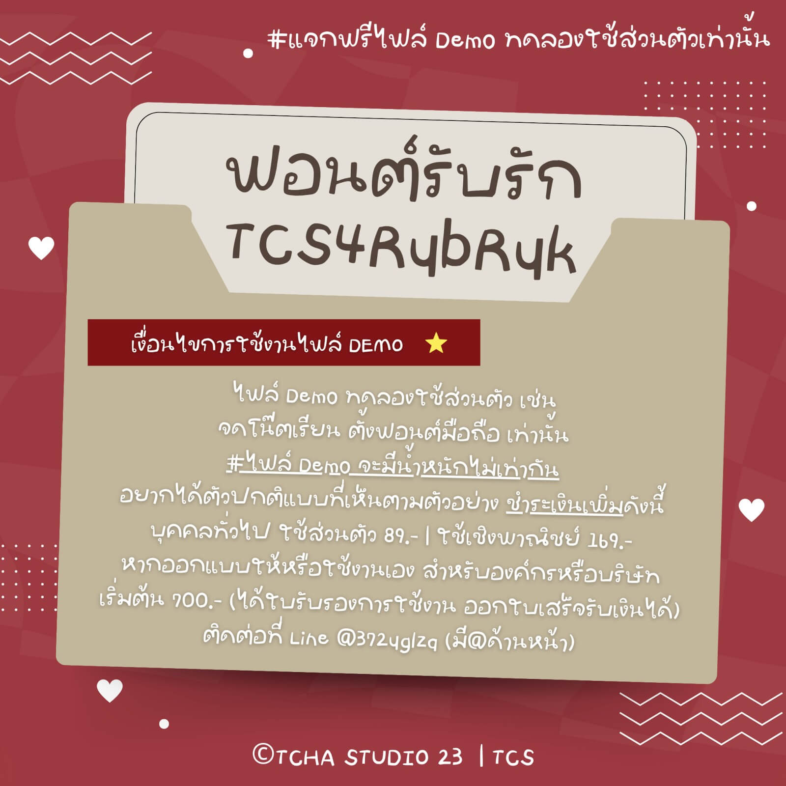 ฟอนต์รับรัก (TCS4RubRuk) – โหลดฟรี เวอร์ชันทดลอง (Demo) สำหรับทดลองใช้ส่วนตัวเท่านั้น