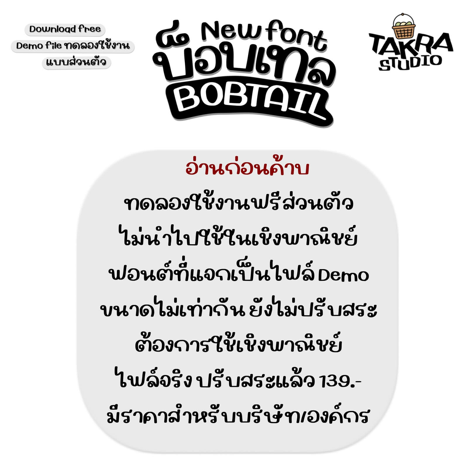 - ฟอนต์เป็นไฟล์ DEMO ขนาดไม่เท่ากัน ยังไม่ได้ปรับสระ