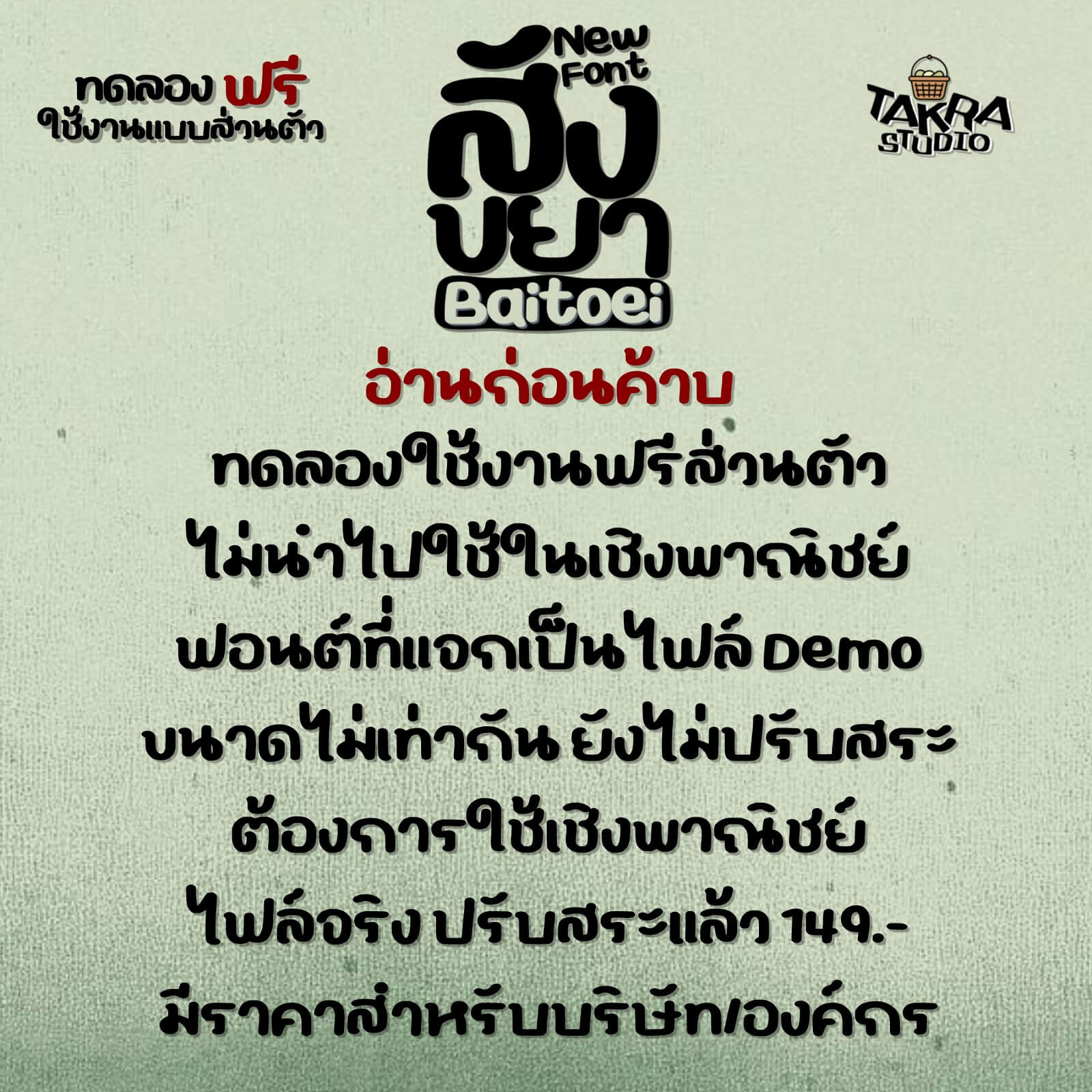 - ไม่อนญาตให้นำไฟล์ฟอนต์ไปแจก แถม ขาย หรือดัดแปลง*