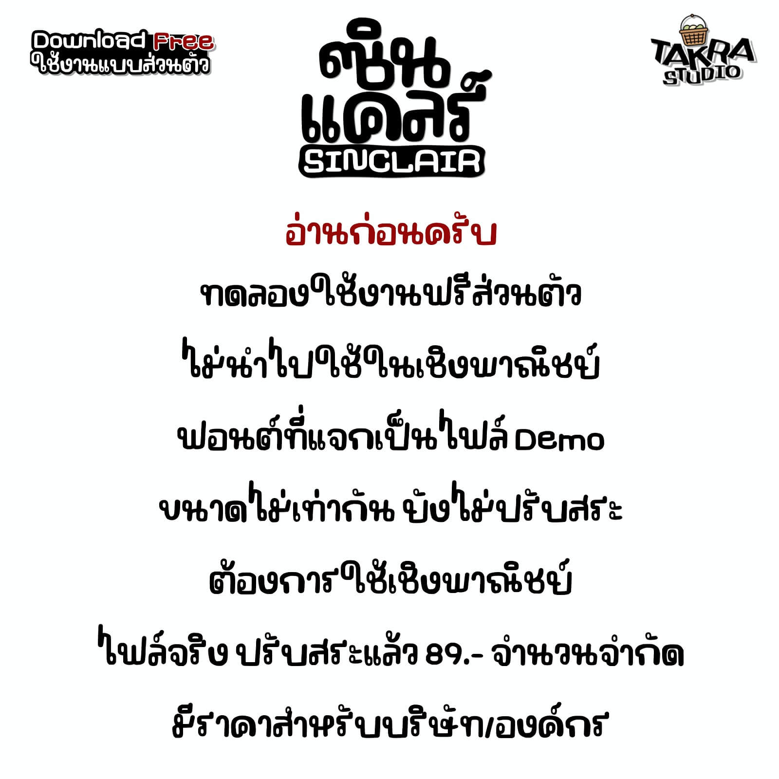 - ไม่อนญาตให้นำไฟล์ฟอนต์ไปแจก แถม ขาย หรือดัดแปลง*