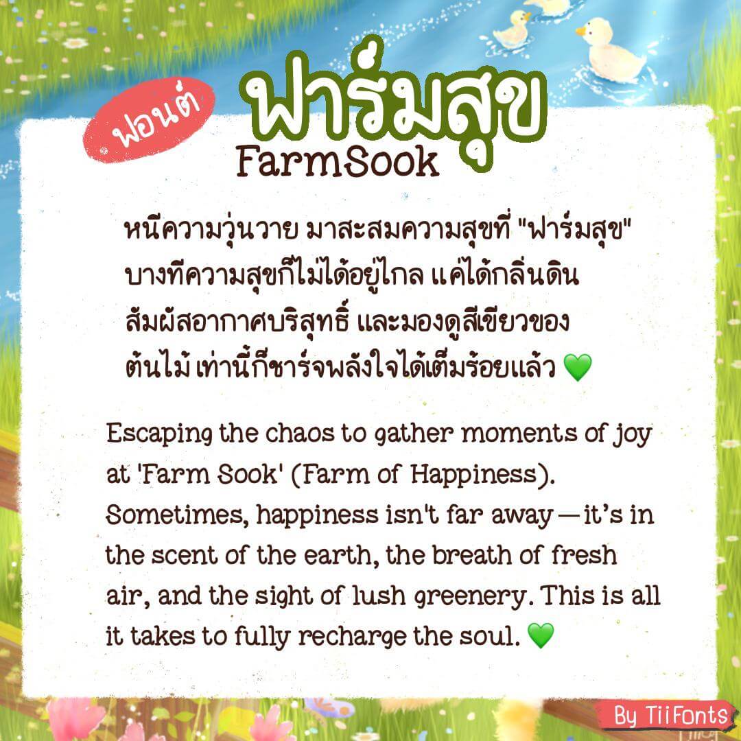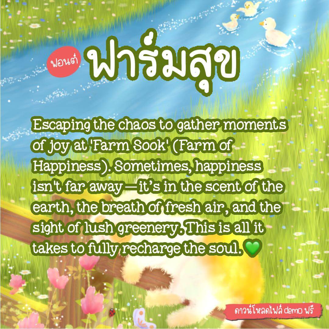 เติมความละมุนให้ทุกงานออกแบบ หนีความวุ่นวาย มาเติมความสดใสด้วยฟอนต์ “ฟาร์มสุข” ฟอนต์ลายมือนุ่มนวล เป็นกันเอง เหมือนได้พักผ่อนท่ามกลางธรรมชาติ
