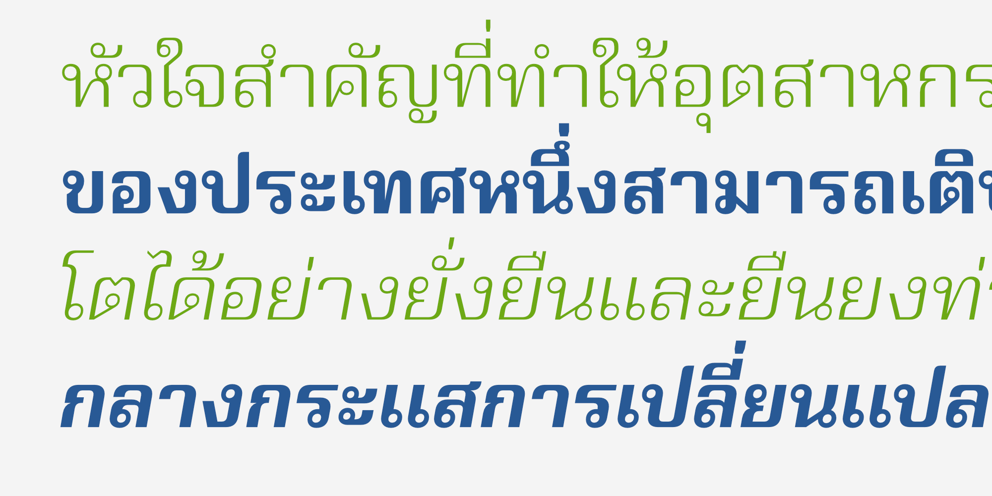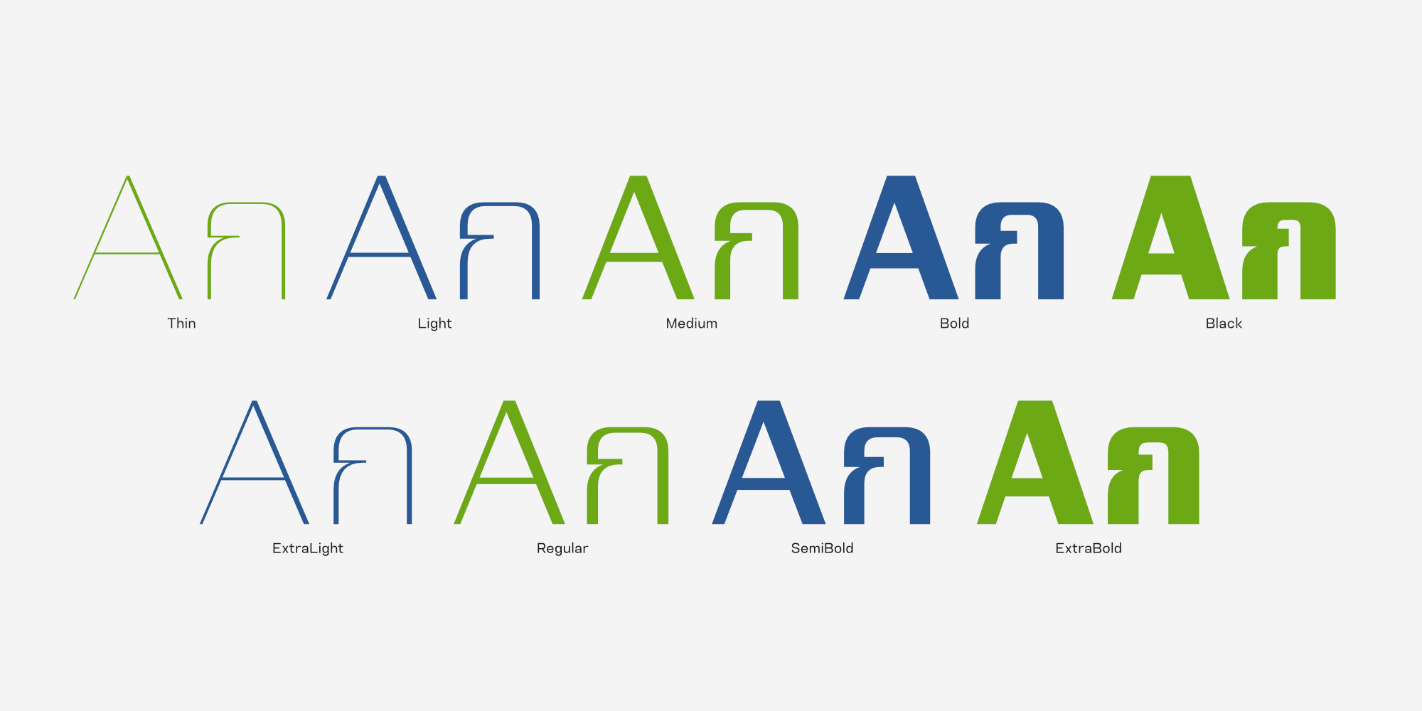 ชุดฟอนต์นี้มาพร้อมน้ำหนักที่ครอบคลุมการใช้งานถึง 18 สไตล์ ไล่ระดับตั้งแต่น้ำหนักบางเบา (Thin) ที่ดูหรูหรา ไปจนถึงน้ำหนักหนาพิเศษ (Black) พร้อมตัวเอียง (Italic) ในทุกน้ำหนัก เพื่อให้นักออกแบบสามารถเลือกใช้สร้างสรรค์ลำดับความสำคัญของเนื้อหาได้อย่างอิสระ