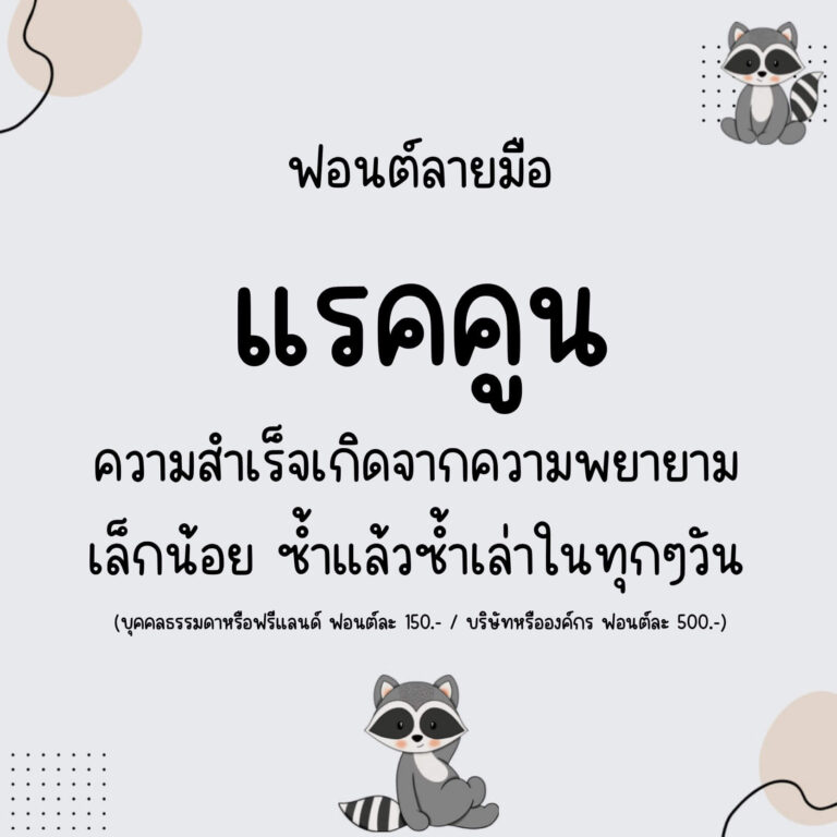 ฟอนต์ลายมือ แรคคูน (Raccoon) แจกฟรี ไฟล์ Demo 1 ไฟล์ (ทดลองใช้งาน) *** สำหรับใช้กับงานที่ไม่ก่อให้เกิดรายได้ทั้งทางตรงและทางอ้อมเท่านั้น *** เช่น สรุปงานส่งอาจารย์ ช็อตโน้ตสรุปเนื้อหาไว้อ่านหนังสือสอบ