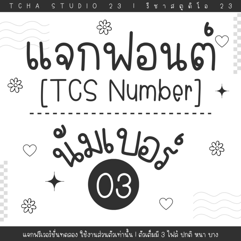 ฟอนต์นัมเบอร์03 (TCS Number03) ฟอนต์ตัวมน ลายมือน่ารักตะมุตะมิ มีความอ้วนหน่อยๆ ยังคงความเป็นระเบียบ