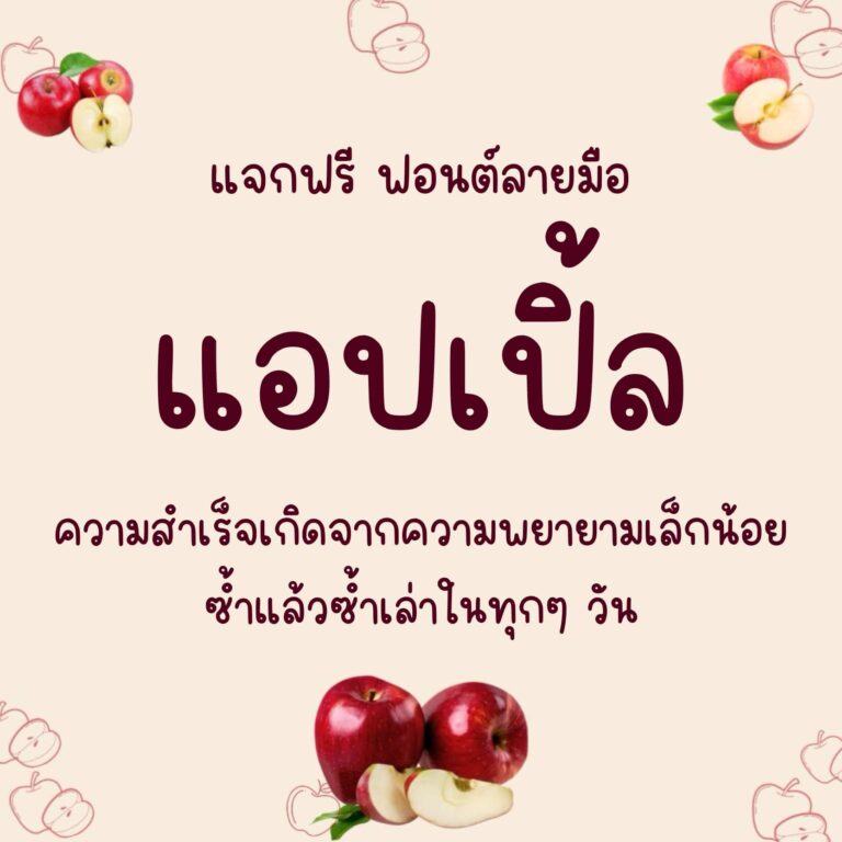 แจกฟรี !! ฟอนต์ลายมือ แอปเปิ้ล (Apple) ฟอนต์ลายมือเรียบๆ อ่านง่าย สบายตา สำหรับใช้งานส่วนตัว 1 น้ำหนัก(บาง) สามารถใช้งานได้หลายรูปแบบ ไม่ว่าจะเป็นจดโน้ต สรุปงาน