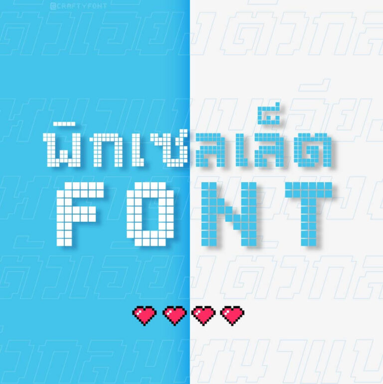 ฟอนต์พิกเซลเล็ต มาในรูปแบบตัวเม็ดพิกเซลสุดคลาสสิก ตอนแรกกะจะทำแบบแถวเดียวทึบ ให้ความกว้างไม่เกิน 5-6 เม็ดพิกเซล แต่ทำไปทำมาบางตัวกว้างไปถึง 12 พิกเซลเลย แหะๆ