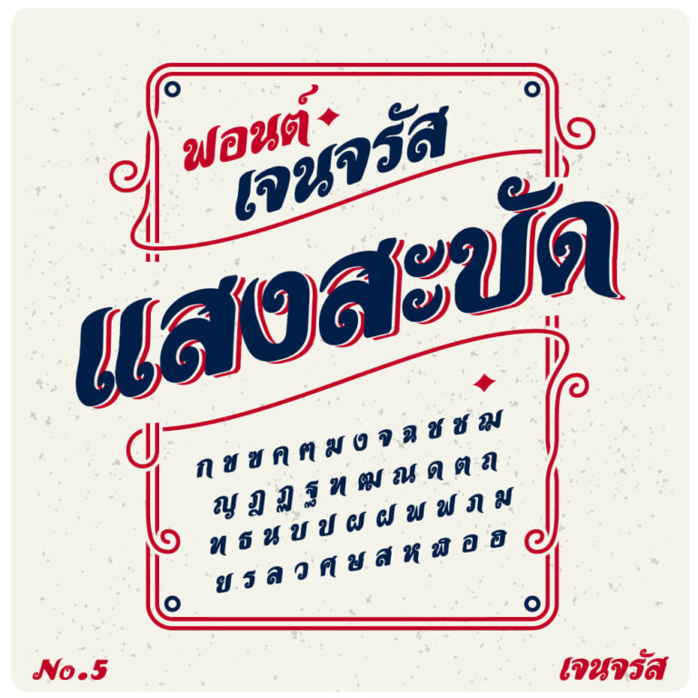 ฟอนต์เจนจรัส ชาญเชิง เป็นฟอนต์ลายมือ ซึ่งดัดแปลงจากเวอร์ชันปกติ มีชั้นเชิงลูกเล่นมาจากภาพประกอบ ลายเส้นการ์ตูนสมัยก่อนผสมกับลายมือคุณพ่อ ฟีลลิ่งสนุกๆ มันส์ๆ เหมาะกับเป็นหัวข้อหรือทำป้ายและสื่อโฆษณาต่างๆ